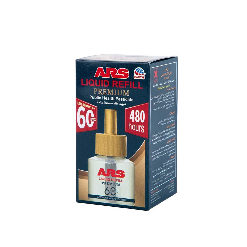 الوصف:هو سائل قاتل وطار للناموس آمن لجميع افراد الاسرة.يُستخدم كغيار لجهاز أرس قاتل للناموس.بدون رائحة. مكونات أرس سائل قاتل الناموس:المادة الفعالة: Prallethrin 0.666% w/vمواد غير نشطة: 99.33%مواصفات أرس سائل قاتل الناموس 720 ساعة:بدون رائحة تمامًا.عبوة تكفي لمدة 480 ساعة أو 60 يوما بواقع 6 ساعات يوميًا.آمن لجميع أفراد الأسرة.غير ضار بالصحةمناسب للمساحات الكبيرة والصغيرةيعمل بالكهرباء ولا يحتاج إلى بطارية. طريقة الأستعمال:انزع غطاء العبوة، وقُم بتركيب العبوة فى الجهاز فى المكان المخصص لها قم بلف علبة السائل باتجاه عقارب الساعةلاستبدال العبوة عندما تنتهى الكمية لف علبة السائل عكس اتجاه عقارب الساعة.ادخل توصيلة الكهرباء فى مكان التيار الكهربائي.يوجد لمبة صغيرة مضيئة تشير أن الجهاز يعمل. التحذيرات:يُحفظ بعيدا عن متناول الأطفال والحيوانات الأليفة.لا تقم بتغطية المجموعة بأي شيء عند عدم الاستخدام.لا تعرض الزجاجة السائلة لأشعة الشمس المباشرة.إذا لم يتم استخدام المجموعة لمدة طويلة ، فقم بإزالة الزجاجة وتخزينها مع إغلاق الغطاء بإحكام.