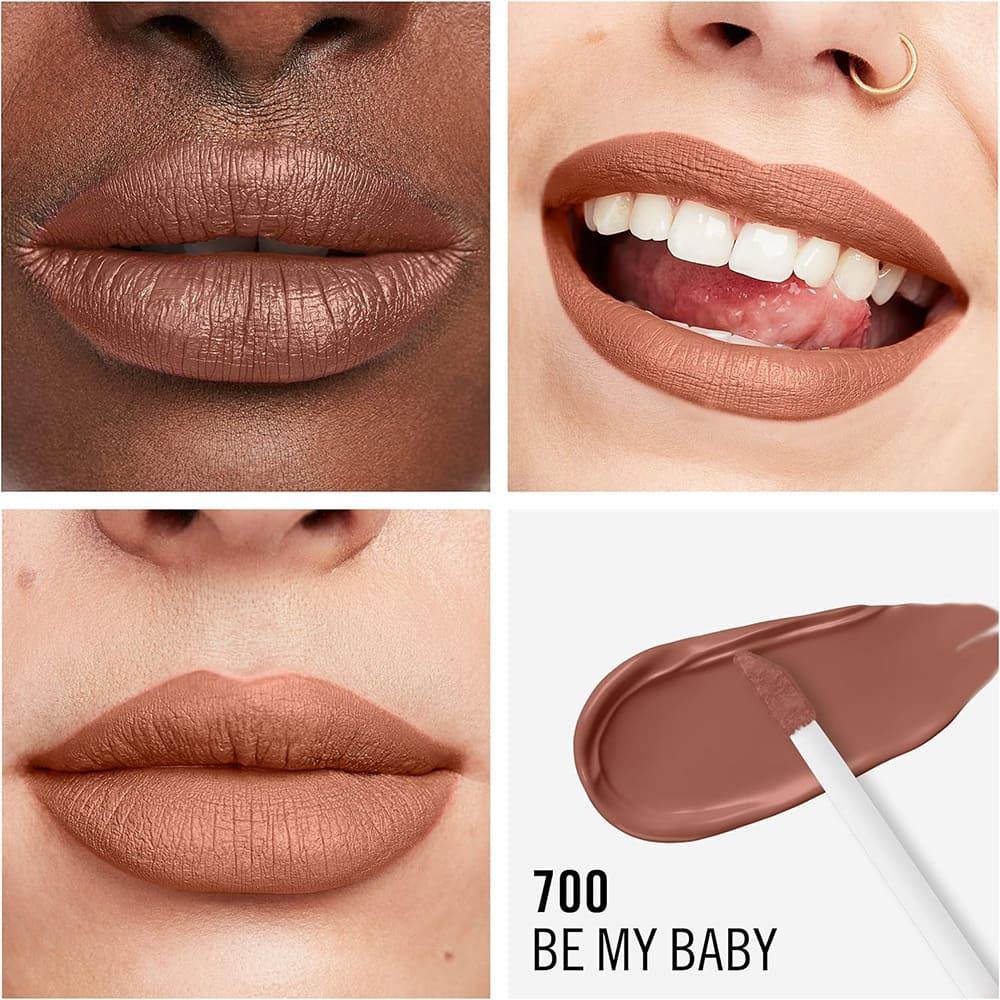 أحمر شفاه سائل من ريميل لندن بتركيبة مات في اللون رقم 700 بي ماي بيبي هو لون بيج دافئ وطبيعي. يوفر مظهراً طبيعياً وأنيقاً مع لمسة نهائية غير لامعة، مما يجعله مثالياً للاستخدام اليومي أو لإطلالة مسائية هادئة. تركيبة السائل تضمن تطبيقاً سلساً وثباتاً طويلاً.