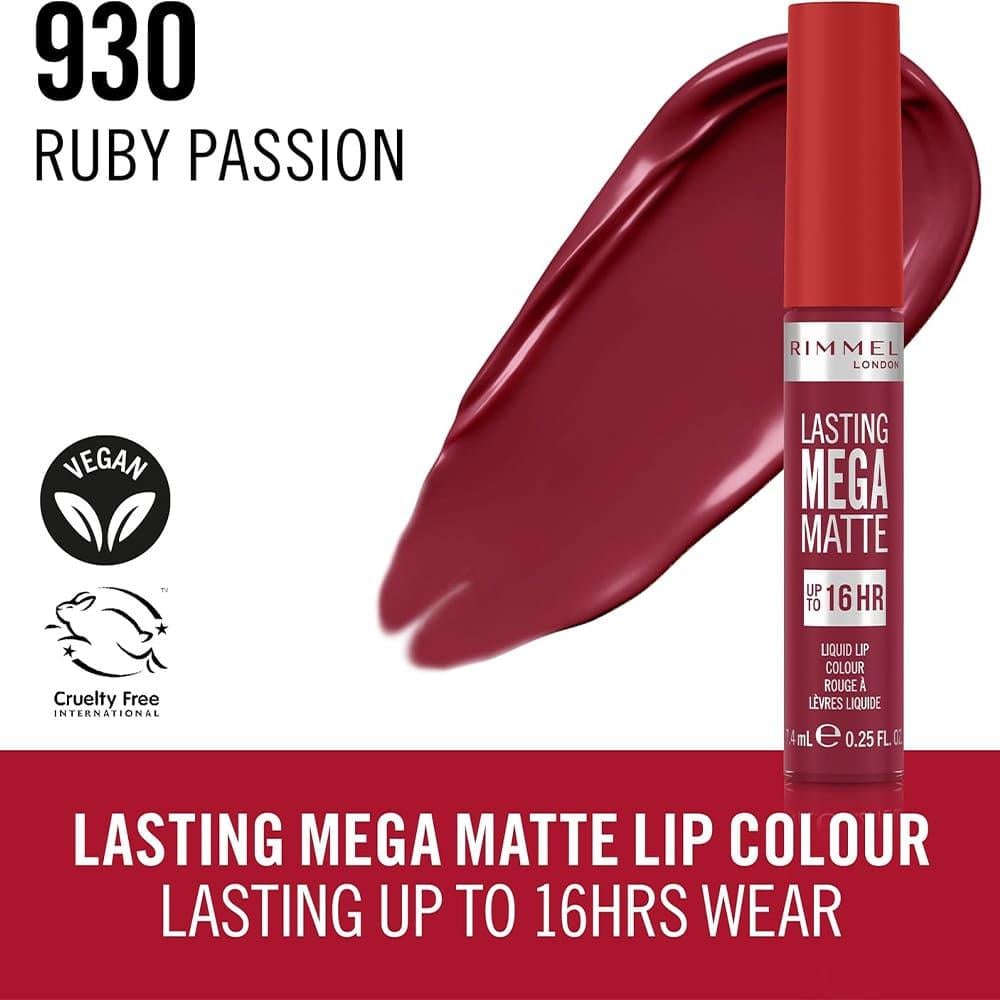ريميل لندن أحمر شفاه سائل لاستينج ميجا مات رقم 930 روبي باشن 7.4 مل
