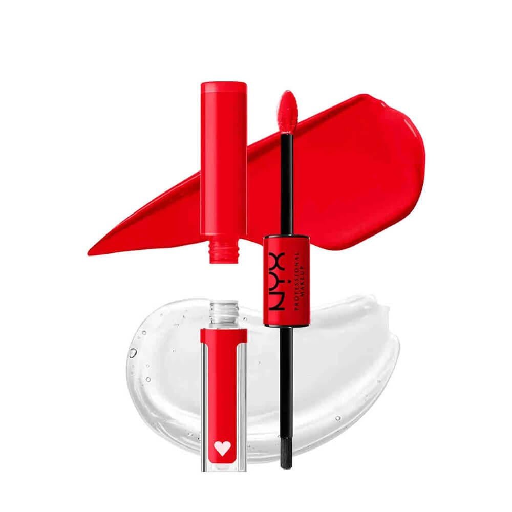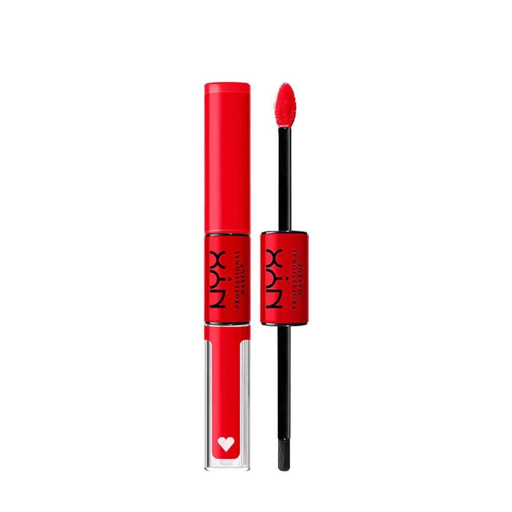 أحمر وملمع الشفاه NYX  Shine Loud هو أحمر شفاه ثنائي الأطراف يوفر لوناً غنياً ولمعاناً مذهلاً. يتميز بتركيبة طويلة الأمد تقاوم التلطخ وتدوم حتى 16 ساعة. يتضمن طرفاً يحتوي على أحمر شفاه غير لامع مكثف، وطرفاً آخر يحتوي على ملمع شفاف يضيف لمسة نهائية لامعة. يمنح الشفاه لوناً جريئاً وثباتاً طوال اليوم مع الحفاظ على راحتها وترطيبها. مثالي لمن يبحثون عن أحمر شفاه يدوم طويلاً مع تأثير لامع وجذاب.