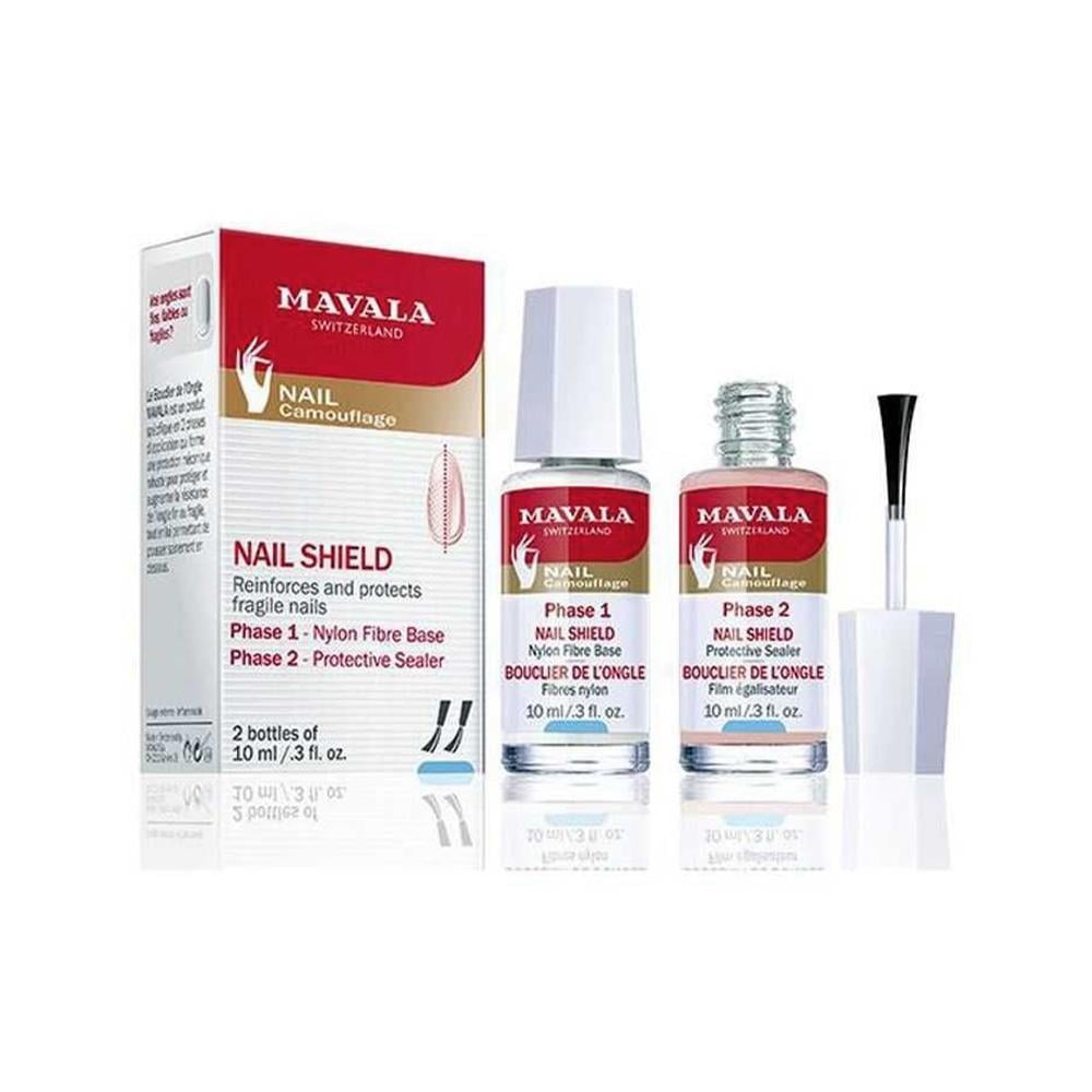 مافالا Nail Shield هو منتج محدد للتطبيق على مرحلتين يشكل حماية جسدية قوية لتقوية الأظافر الضعيفة والهشة مع السماح لها بالنمو بشكل طبيعي تحتها.