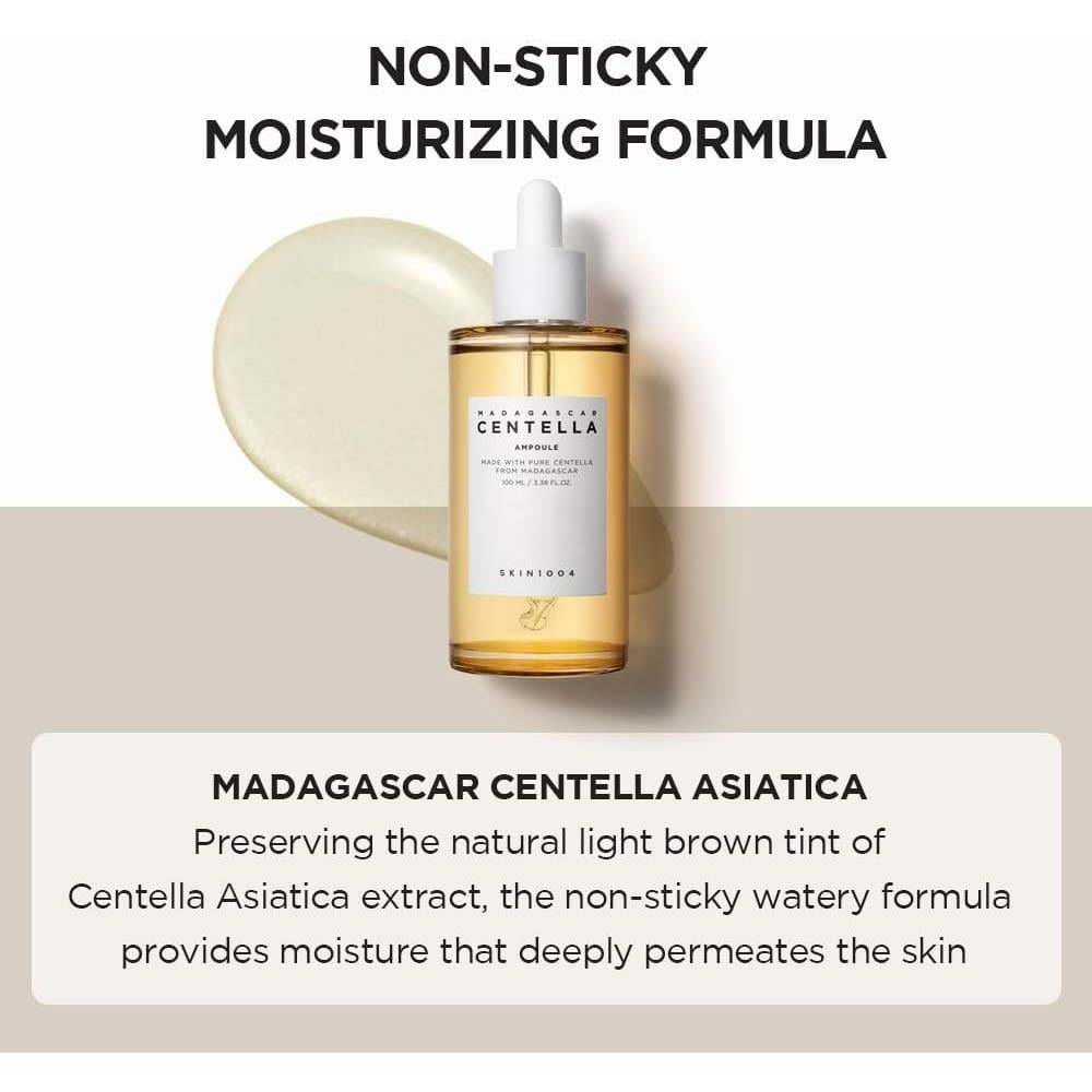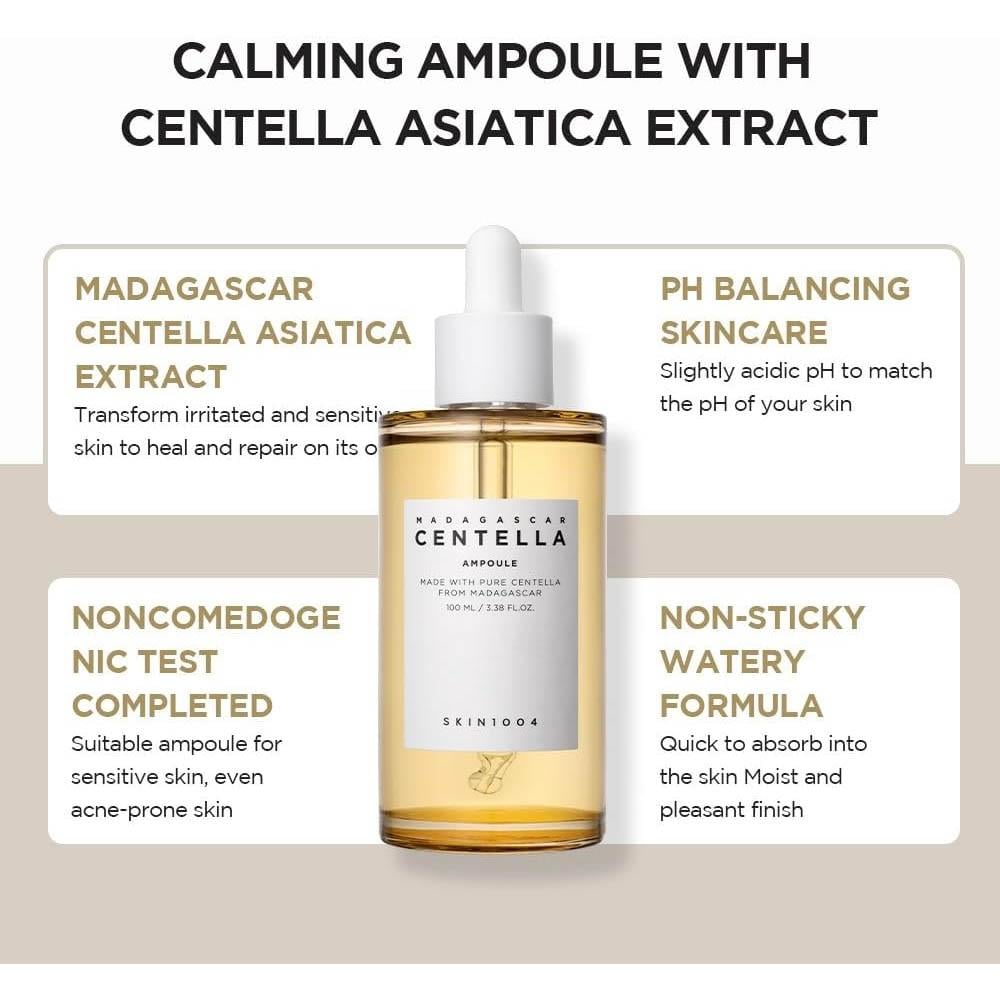 سيروم أمبولة سكين 1004 مدغشقر سينتيلا مميز يهدف إلى تجديد البشرة وتهدئتها. تحتوي الأمبولة على مستخلص نبات السنتيلا الآسيوي (Cica)، وهو مكون مشهور بخصائصه المهدئة والمضادة للالتهابات، مما يجعله مثالياً للبشرة الحساسة والمتهيجة. تعمل هذه الأمبولة على تحسين ملمس البشرة، تقليل الاحمرار، وتعزيز الإشراق والنضارة.