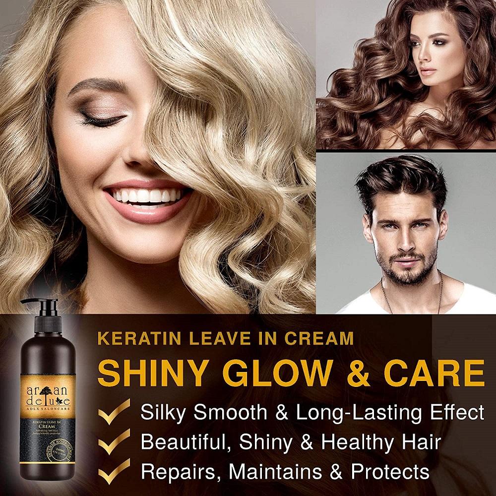 يوفر كريم الكيراتين الذي يترك على الشعر تغذية رطبة ومكثفة مع تقليل التجعد والتطاير مع حماية طويلة الأمد للرطوبة ، يمتص الشعر خلاصة زيت الارغان الموجود في هذا الكريم بسهولة مما يزيد من لمعانه ونعومته الى درجة ملحوظة ، يحتوي على مرشح لأشعة الشمس ، واقي من الأشعة فوق البنفسجية ومعالج لجذور الشعر الهشة.