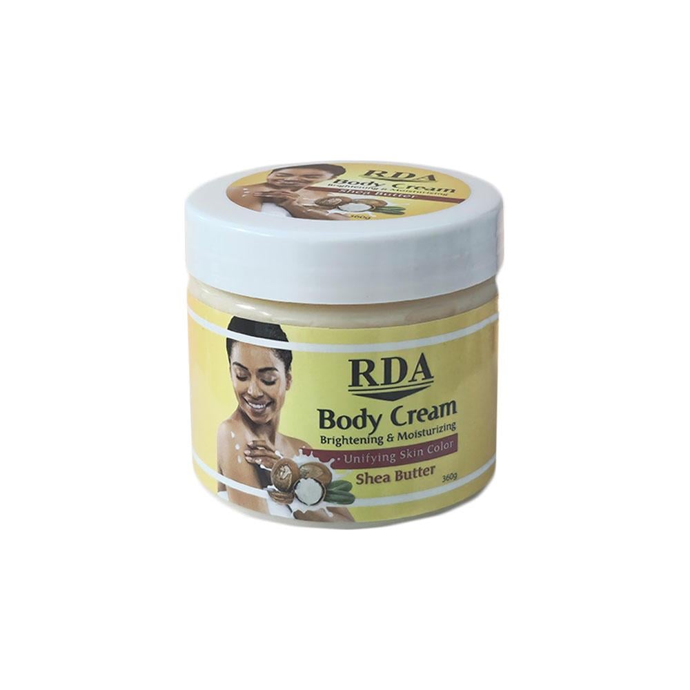 RDA لوشن مبيض لليدين والجسم بخلاصة زبدة الشيا” مصمم لتفتيح البشرة وترطيبها بعمق. يحتوي على خلاصة زبدة الشيا التي توفر ترطيبًا عميقًا وتغذية للبشرة. يساعد في توحيد لون البشرة وجعلها أكثر إشراقًا ونعومة.