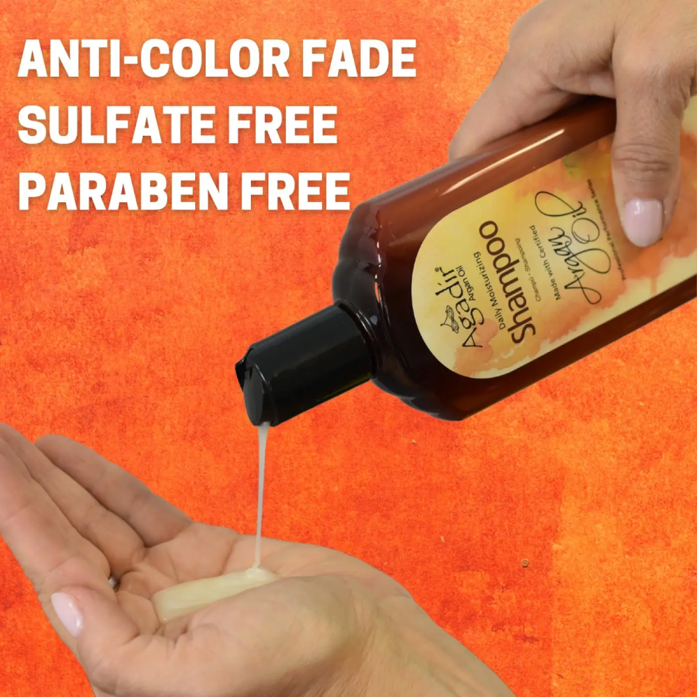 الوصف:شامبو أغادير بزيت الأرغان هو شامبو مرطب ومنعم للشعر الجاف والتالف. الفوائد والمميزات:يُرطب الشعر بعمق ويُحافظ على رطوبته لفترات طويلة.يُنعّم الشعر ويجعله سهل التسريح.يحتوي على زيت الأرغان الذي يُغذي الشعر ويُحافظ على صحة فروة الرأس.مناسب لجميع أنواع الشعر، بما في ذلك الشعر الخشن والمجعد. طريقة الاستعمال:بللي شعرك بالماء.ضعي كمية وفيرة من الشامبو على شعرك.دلّكي فروة رأسك وشعرك بالشامبو حتى يتكون رغوة.اغسلي شعرك جيدًا بالماء.كرري العملية إذا لزم الأمر. التحذيرات:للاستعمال الخارجي فقط.يتجنب ملامسة العينين،في حالة ملاسة العينين، اشطفهما فورًا بالماء.يتوقف عن الاستخدام في حالة حدوث تهيج أوحساسية .يحفظ بعيدا عن متناول الأطفال.يحفظ في مكان بارد وجاف ، بعيداً عن أشعة الشمس المباشرة.