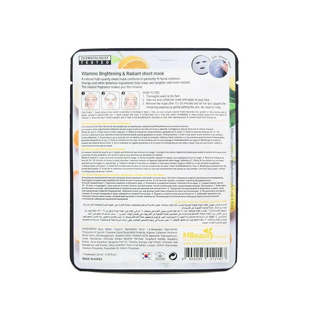الوصف :قناع الوجه النباتي بالفيتامينات من إم بيوتي هو منتج عناية بالبشرة مصمم خصيصًا لترطيب وتغذية البشرة. يحتوي هذا القناع على مزيج من الفيتامينات التي تساعد على تحسين مظهر البشرة وتعزيز صحتها العامة. الفوائد والمميزات :يعزز ترطيب البشرة ويحافظ على نعومتها.يساعد في تغذية البشرة وتحسين مرونتها.يحتوي على مكونات طبيعية تساعد على تهدئة وتنعيم البشرة.يساعد في تفتيح وتوحيد لون البشرة.يمنح البشرة مظهرًا مشرقًا وحيويًا.سهل الاستخدام ويمكن استخدامه في أي وقت تشاء. طريقة الاستعمال :اغسلي وجهك بالماء الدافئ وجففيه.أخرجي القناع من العبوة وافرديه على وجهك.اتركي القناع على وجهك لمدة 15-20 دقيقة.أزيلي القناع من وجهك ودلكي البقايا على بشرتك. التحذيرات :للاستعمال الخارجي فقط.يتوقف عن الاستخدام في حالة حدوث تهيج أوحساسية .يحفظ بعيدا عن متناول الأطفال.يحفظ في مكان بارد وجاف ، بعيداً عن أشعة الشمس المباشرة.