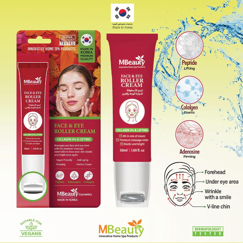 كريم إم بيوتي للوجه والعين 50 مل هو كريم خفيف الوزن وغير دهني مصمم لترطيب وتغذية البشرة حول العينين والوجه. يحتوي على مجموعة متنوعة من المكونات المفيدة، بما في ذلك حمض الكولاجين والأدينوزين والببتيد ، والتي تعمل معًا لتقليل ظهور الخطوط الدقيقة والتجاعيد وتحسين لون البشرة وملمسها وتفتيح البشرة. تسهل أداة وضع الكريم ذات الكرة الدوارة وضع الكريم بشكل متساوي ودقيق، كما أنها تساعد على تدليك الجلد وتنشيط الدورة الدموية. فوائد كريم إم بيوتي للوجه والعين 50 مل: يرطب ويغذي البشرةيقلل من ظهور الخطوط الدقيقة والتجاعيديحسن لون البشرة وملمسهايضيء البشرةيهدئ ويهدئ البشرة المتهيجةيقلل من ظهور الانتفاخات والهالات السوداءآمن لجميع أنواع البشرة، بما في ذلك البشرة الحساسة.طريقة الاستعمال:نظفي بشرتك وجففيها.ضعي كمية صغيرة من الكريم على أداة وضع الكرة الدوارة.قومي بلف أداة التطبيق بلطف على الجلد حول عينيك ووجهك.ضعي الكريم الزائد على بشرتك.استخدمي الكريم مرتين يومياً، مرة في الصباح ومرة في المساء.التحذيرات:للاستخدام الخارجي فقط.يحفظ بعيدا عن متناول الأطفال.يخزن في مكان جاف بعيدا عن الشمس.
