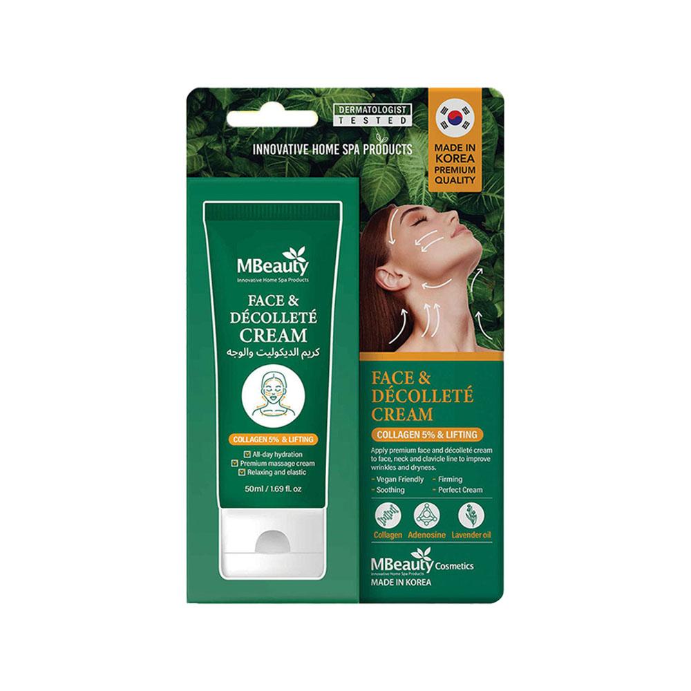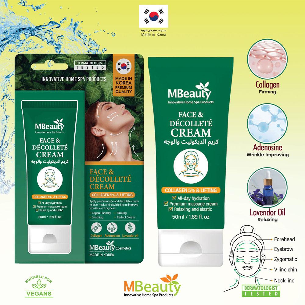 الوصف: ام بيوتي كريم الديكوليت والوجه هو كريم مرطب للوجه والرقبة يحتوي على مكونات طبيعية مثل الكولاجين النباتي والأدينوزين والنياسيناميد وزيت اللافندر. هذا المنتج يساعد على تحسين مرونة البشرة وتقليل ظهور التجاعيد. الفوائد والمميزات: يساهم في تحسين مرونة البشرة ودعم إنتاج الكولاجين الطبيعي. يساعد على تقليل ظهور التجاعيد وتعزيز تجديد الخلايا. يعمل على تفتيح البشرة وتحسين ملمسها. له خصائص مهدئة ومضادة للالتهابات. طريقة الاستعمال: يوصى باستخدام كريم Mbeauty Face & Decollete Cream مرتين يوميًا، صباحًا ومساءً. يوضع على الوجه والرقبة بعد تنظيفهما. التحذيرات: للاستخدام الخارجي فقط. يحفظ في مكان بارد وجاف ، بعيداً عن أشعة الشمس المباشرة. يحفظ بعيداً عن متناول الأطفال. احذري من ملامسة المنتج للعينين. في حال ملامسة العين يشطف بالماء على الفور.