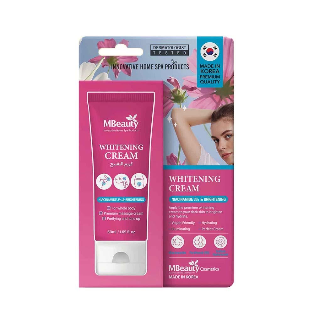 تم تصميم كريم التبييض من M Beauty Cosmetics لمعالجة المخاوف المتعلقة بتصبغ الجلد والبقع الداكنة يحتوي على مكونات تعمل على تقليل ظهور البقع الداكنة وتفاوت لون البشرة والعيوب يستخدم هذا الكريم للحصول على بشرة أكثر إشراقًا وتجانسًا يحتوي كريم التفتيح الممتاز على نياسيناميد (3) وغلوتاثيون وتوت البحر وفيتامين B5 وتساعد هذه المكونات في تفتيح البقع الداكنة على الركبتين والمرفقين ومنطقة البكيني وتحت الإبط استخدمي المنتج يوميا للحصول على بشرة متفتحة ورطبة.