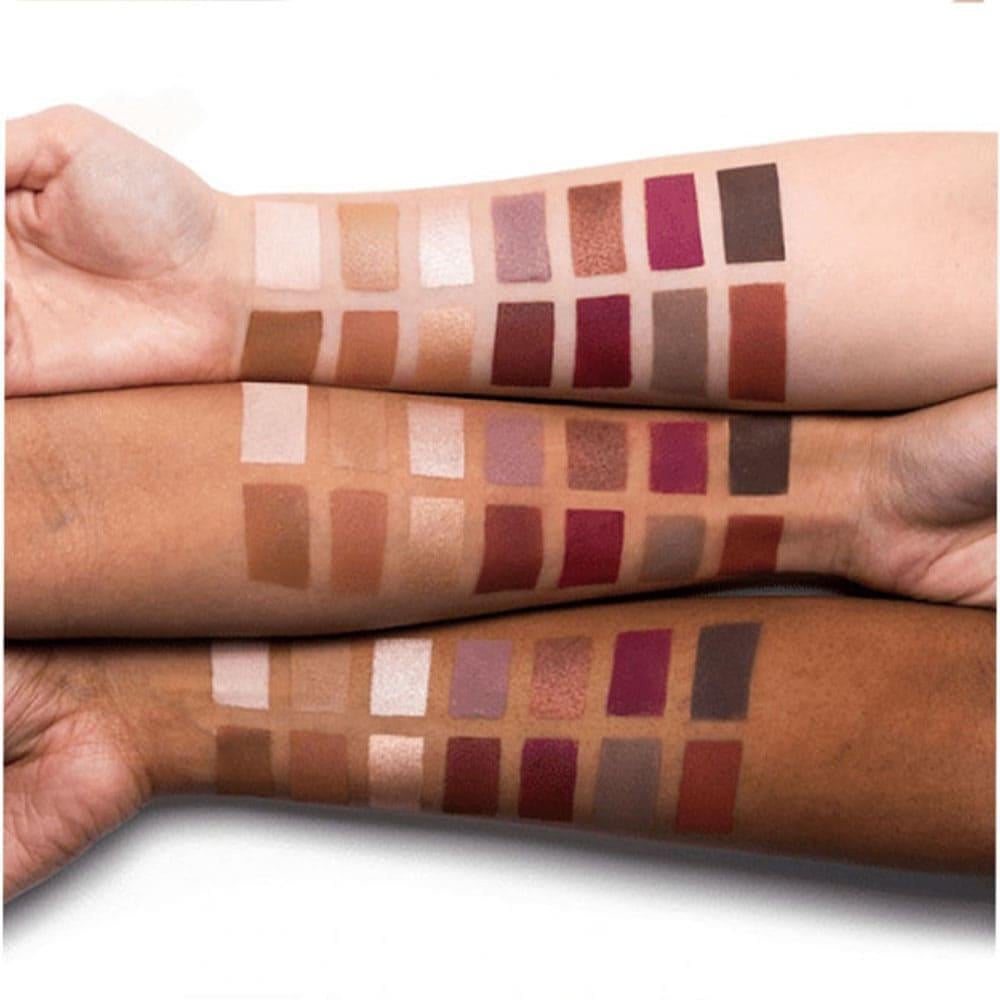 - تنوع الألوان: توفر الباليت مزيجًا متوازنًا من الألوان الدافئة المحايدة والبنيات الترابية والأحمر والوردي الزاهي، مما يجعلها مثالية لإنشاء إطلالات ناعمة أو جريئة.