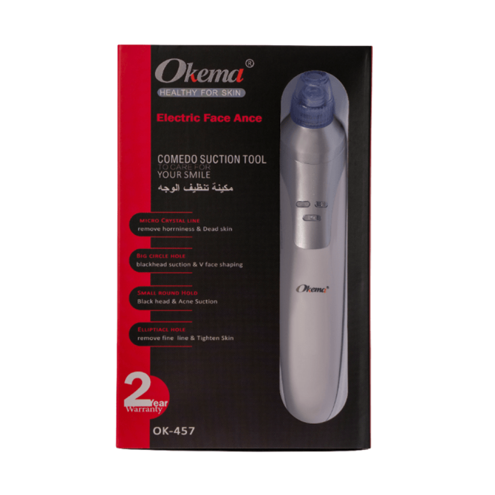 جهاز أوكيما شفط دهون الوجه – OK-457 هو جهاز مصمم للعناية بالبشرة يساعد في تنظيف الوجه بعمق وإزالة الأوساخ والزيوت الزائدة والرؤوس السوداء. يعمل الجهاز بتقنية الشفط الفعّالة التي تساهم في تحسين مظهر البشرة وجعلها أكثر نقاءً وإشراقًا.بالاضافة إلى تنشيط الدورة الدموية للبشرة وتخفيف التجاعيد وإزالة الجلد الميت لتمنحها مظهر بشرة طبيعية نابضة بالحياة.