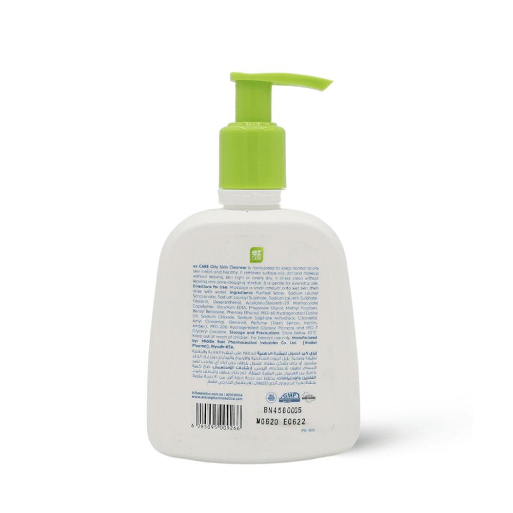 ايز كير غسول وجه للبشرة الدهنية والعادية صُمم منظف البشرة الدهنية Ez Care خصيصاً للحفاظ على البشرة العادية إلى الدهنية نظيفة وصحية. يزيل الزيوت السطحية والأوساخ والمكياج دون ترك الجلد مشدودًا أو جافًا بشكل مفرط. غسول ينظف دون ترك أي رواسب أو بقايا تسد المسام.