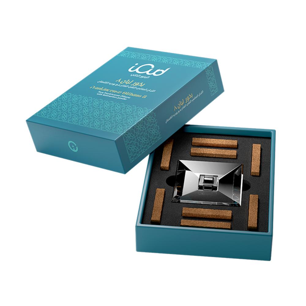 البخور الذكي من اي عود برائحة اللبان الفاخر مع بودرة الكلمنتان، بخور اي عود مزيج خشب العود النقي مع اللبان النقي يمثل رائحة بلسمية وخشبية وحارة مع نفحات فاكهية.