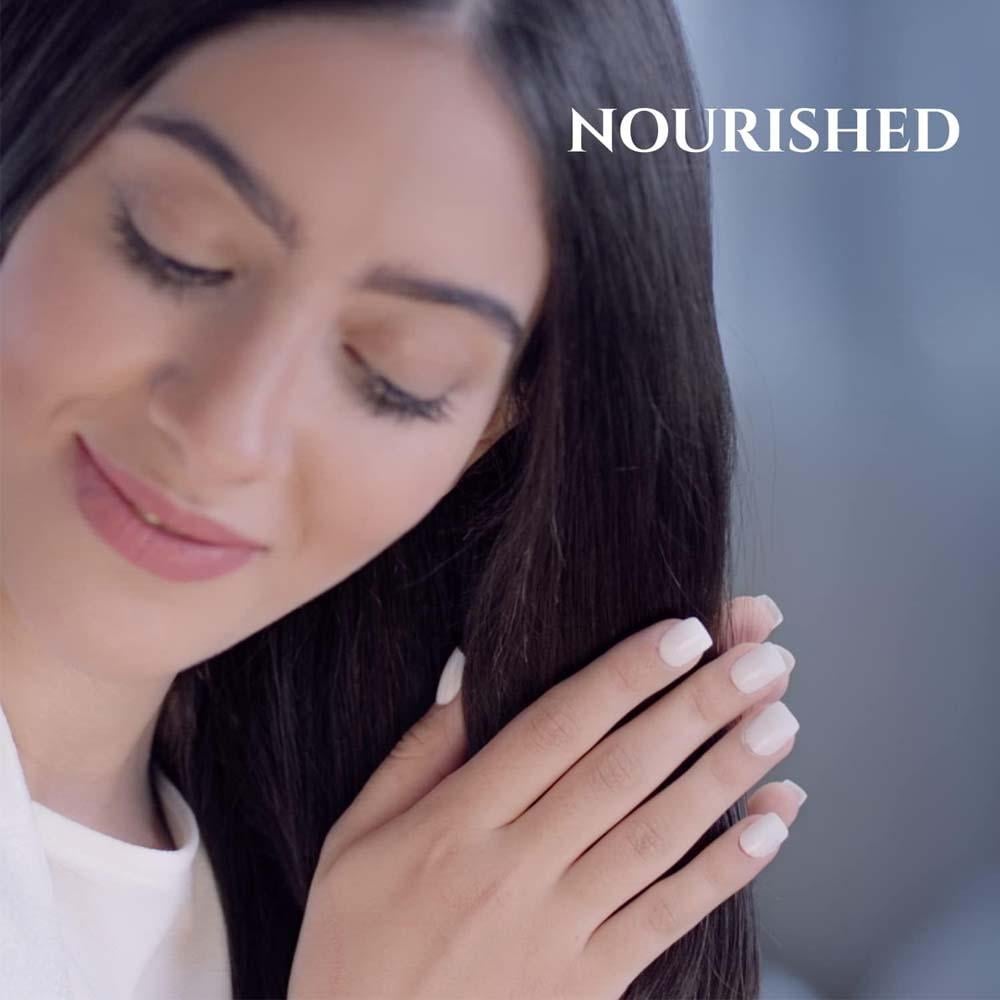 - يمنح الشعر لمعانًا طبيعيًا وصحيًا بفضل خصائص زيت الأرغان وجوز الهند.