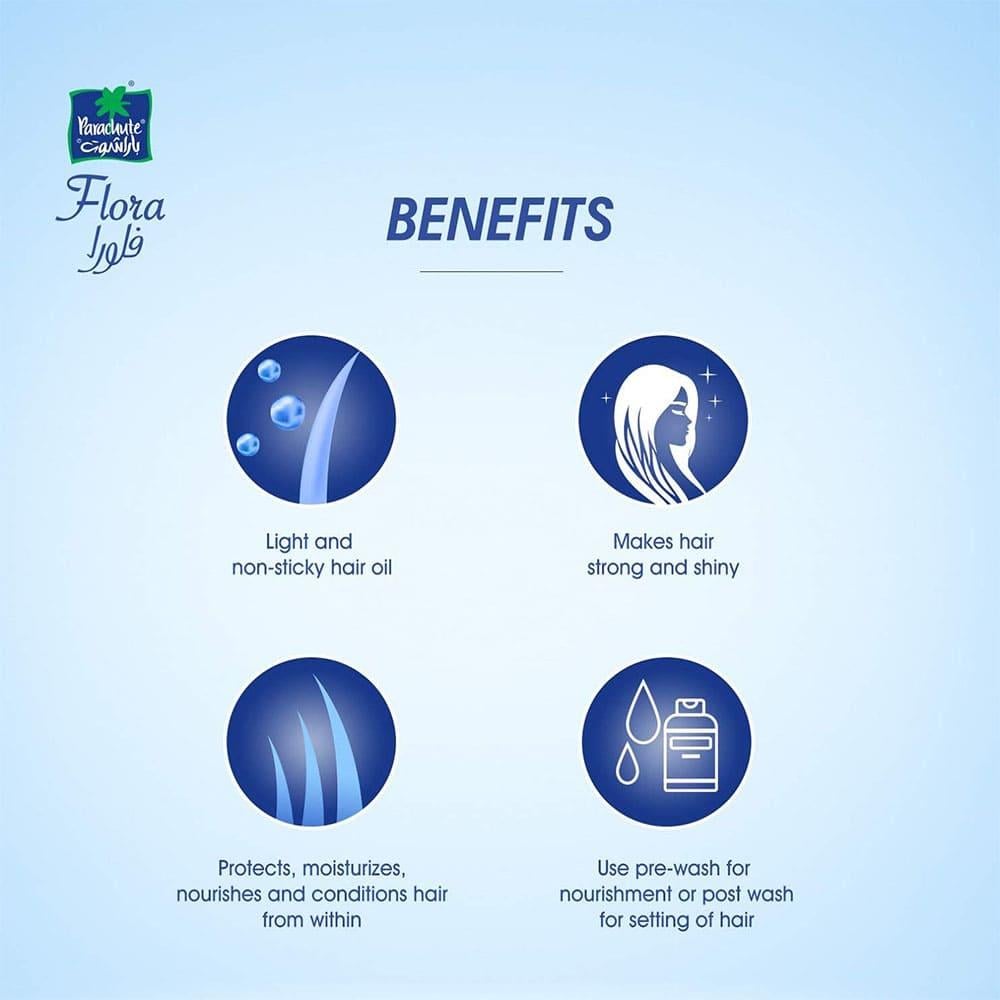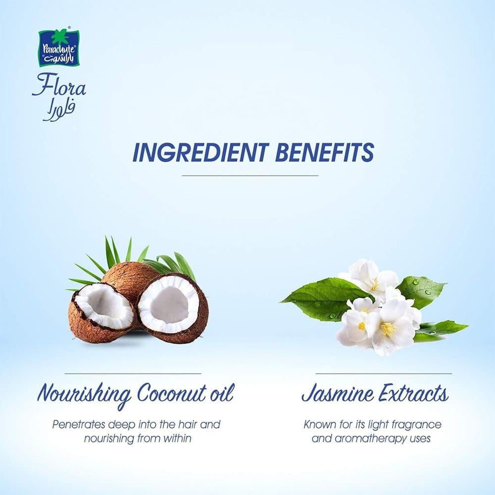 فوائد ومميزات باراشوت فلورا زيت جوز هند برائحة الياسمين المتوفر في متجر أسراركو: