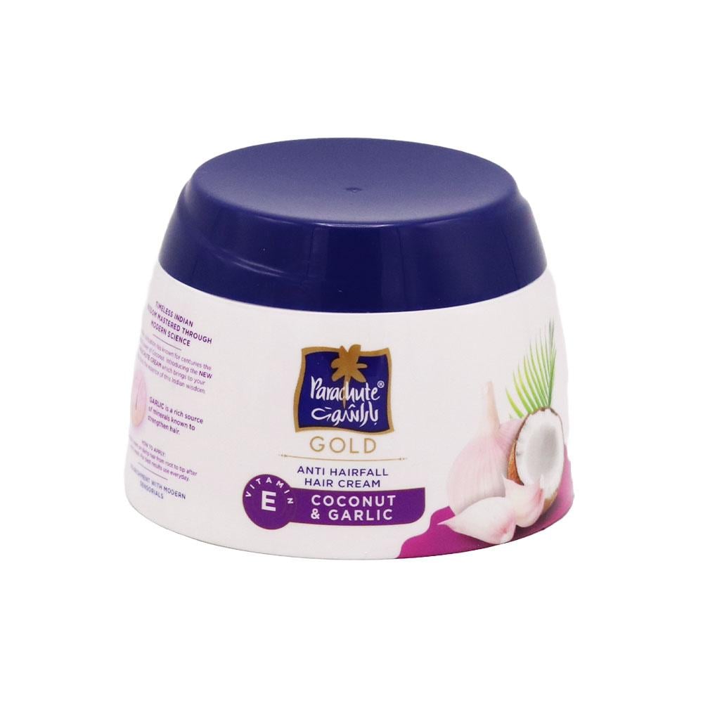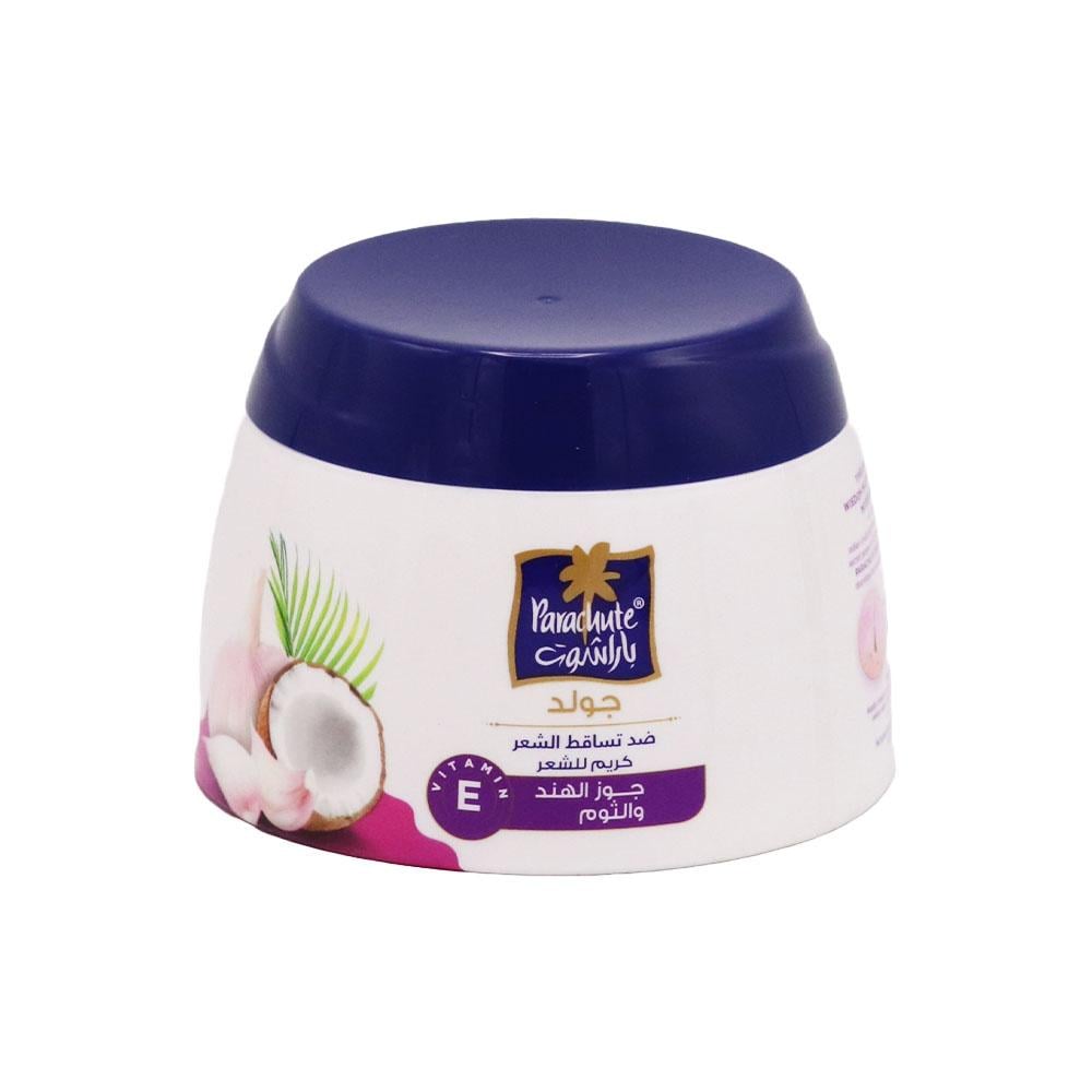 كريم باراشوت جولد للشعر غني بمكون جوز هند خاص يُسمّى الكوكو ليبيد يغذي الشعر ويحميه من أشعة الشمس الضارة يرطب ويلين الجذور مما يزيد من حيوية وقوة الشعر التالف يعمل مستخلص الثوم في هذا المستحضر على محاربة ظهورالقشرة ومنع تساقط الشعر يوفر الغذاء والرعاية لشعرك، مما يؤدي الى المساعدة في النمو يمنع ظهور علامات الشيب المبكر على الشعر ويستخدم الثوم لحماية الشعر من التساقط فهو يمتلك عدة عناصر هامة في تقوية الشعر وتنشيط الدورة الدموية  لذا عليكِ استخدام هذا الكريم لمنع التساقط فهو يحتوي على الكوكو ليبيد والثوم.