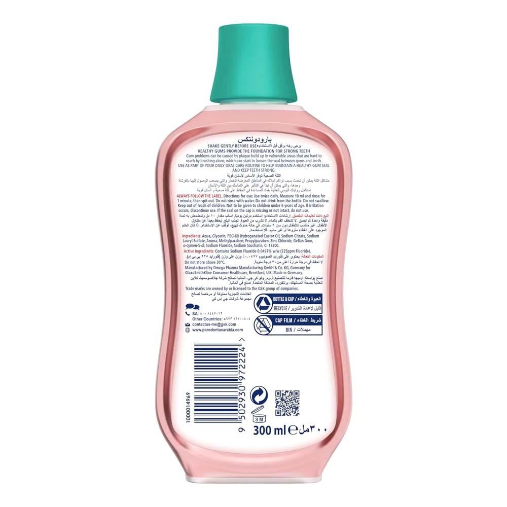 الوصف:اللثة الصحية هي أساس الفم الصحي قد تحدث مشكلات اللثة بسبب تراكم بكتيريا البلاك. عن طريق إزالة طبقة البلاك الموجودة حول خط اللثة وبين الأسنان، سيساعد على منع حدوث مشكلات اللثة من جديد. بارودونتكس غسول فم للعناية اليومية باللثة هو غسول للفم يمنحك انتعاش زائد، يستهدف غسول الفم من بارودونتكس البكتيريا في الأماكن التي يصعب على فرشاة الأسنان وحدها الوصول إليها. استخدم غسول الفم بارودونتكس للعناية اليومية باللثة كجزء من روتينك اليومي للعناية بالفم. فهو مصمم ليكون لطيفا على اللثة وثبثت فعاليته علميا في المساعدة على الحفاظ على صحة اللثة والأسنان. الفوائد والمميزات:مثبت علمياً في الحفاظ على صحة اللثة.يستهدف بكتيريا البلاك التي يخلفها التنظيف بفرشاة الأسنان.يعمل بين الأسنان وحول خط اللثة.يساعد الفلورايد على تقوية الأسنان.مع دوام رائحة النفس المنعشة. المكونات:أكوا ، جلسرين ، PEG – 60 زيت خروع مهدرج ، سيترات الصوديوم ، كبريتات لوريل الصوديوم ، رائحة ، ميثيل بارابين ، بروبيل بارابين ، كلوريد الزنك ، صمغ جيلان ، o – سيمين – 5 – أول ، فلوريد الصوديوم ، السكرين الصوديوم ، CI 17200.المكونات النشطة تحتوي على فلوريد الصوديوم 0.0497٪ وزن / وزن (225 جزء في المليون فلورايد). التحذيرات:يرج المنتج بلطف قبل الاستخدام.للاستخدام الخارجي فقط.يحفظ بعيداً عن متناول الأطفال، في درجة حرارة أقل من 30 درجة مئوية.