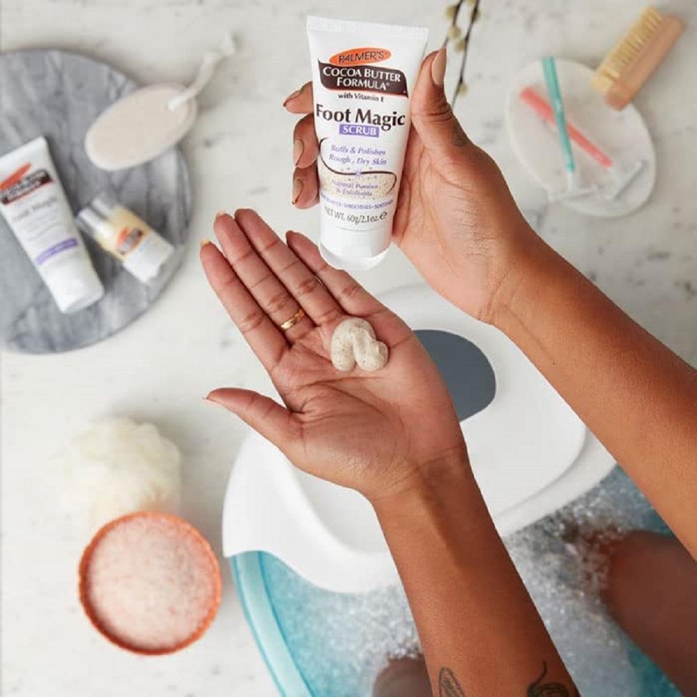 الوصف:بالمرز مقشر سحري للقدمين بفيتامين هـ هو مقشر قوي بتركيبة زبدة الكاكاو من بالمر ينشط ويقشر الجلد القاسي على القدمين ، وخاصة البقع الخشنة والجافة على الكعب ؛ يرطب وينعم ويلطف الأقدام المتعبة في نفس الوقت. الفوائد والمميزات:يزيل خلايا الجلد الميتة والجافة من القدمين، مما يجعلها ناعمة وسلسة.يُرطب البشرة ويُحافظ على رطوبتها الطبيعية.يُحسّن من ملمس البشرة ويُجعلها ناعمة الملمس.يُهدئ البشرة ويُخفف من تهيجها.يُضفي على البشرة رائحة منعشة من زبدة الكاكاو.مُناسب لجميع أنواع البشرة. طريقة الاستخدام:بللي قدميك بالماء الدافئ.ضعي كمية كافية من المقشر على يديك أو على ليفة الاستحمام.دلكي المقشر على قدميك بحركات دائرية، مع التركيز على المناطق الخشنة والجافة.اشطفي المقشر جيدًا بالماء.جففي قدميك بمنشفة ناعمة. التحذيرات:للاستعمال الخارجي فقط.يتجنب ملامسة العينين،في حالة ملاسة العينين، اشطفهما فورًا بالماء.يتوقف عن الاستخدام في حالة حدوث تهيج أوحساسية .يحفظ بعيدا عن متناول الأطفال.يحفظ في مكان بارد وجاف ، بعيداً عن أشعة الشمس المباشرة.