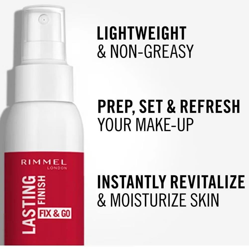 برايمر وسبراي تثبيت ريميل لندن لاستينج فينيش فيكس آند جو هو منتج متعدد الاستخدامات 2 في 1 مصمم لتحضير بشرتك قبل تطبيق المكياج وتثبيته بعد ذلك. يساعد هذا السبراي الخفيف على تثبيت مظهرك لثبات يدوم طويلاً بينما يوفر انتعاشًا وترطيبًا لبشرتك. يمكن استخدامه لزيادة مدة ثبات المكياج والحفاظ عليه طازجًا طوال اليوم.
