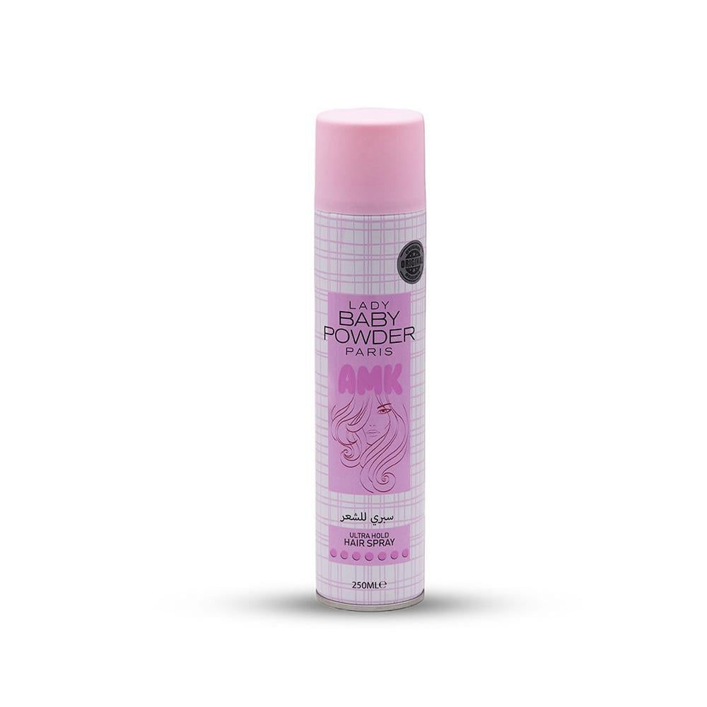 ليدي بيبي باودر ايه ام كي بخاخ الشعر يحمي تسريحة شعرك في اي موسم وظروف جوية بفضل تركيبته القوية المحسنة . وبفضل تركيبته يعطي لمعاناً وحيوية لشعرك.