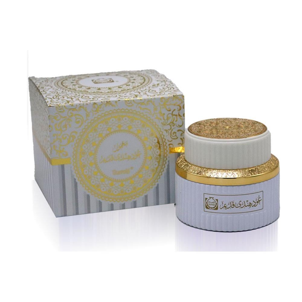 بخور المعمول بالعود الهندي القديم هو نوع من أنواع البخور التي تستخدم في مختلف المناسبات والأحداث. يتميز بخور العود الهندي القديم برائحة عطرية فريدة ومميزة، ويتم استخدامه في المنازل والأماكن الدينية وغيرها من الأماكن لتعطير الجو وتهدئة الأعصاب وتحسين المزاج. كما يستخدم بشكل شائع في الطب البديل والعلاج بالروائح العطرية. ويتم تحضيره بإضافة العود الهندي إلى مزيج من الأعشاب والزيوت العطرية والتوابل لإضفاء رائحة طيبة ومميزة.