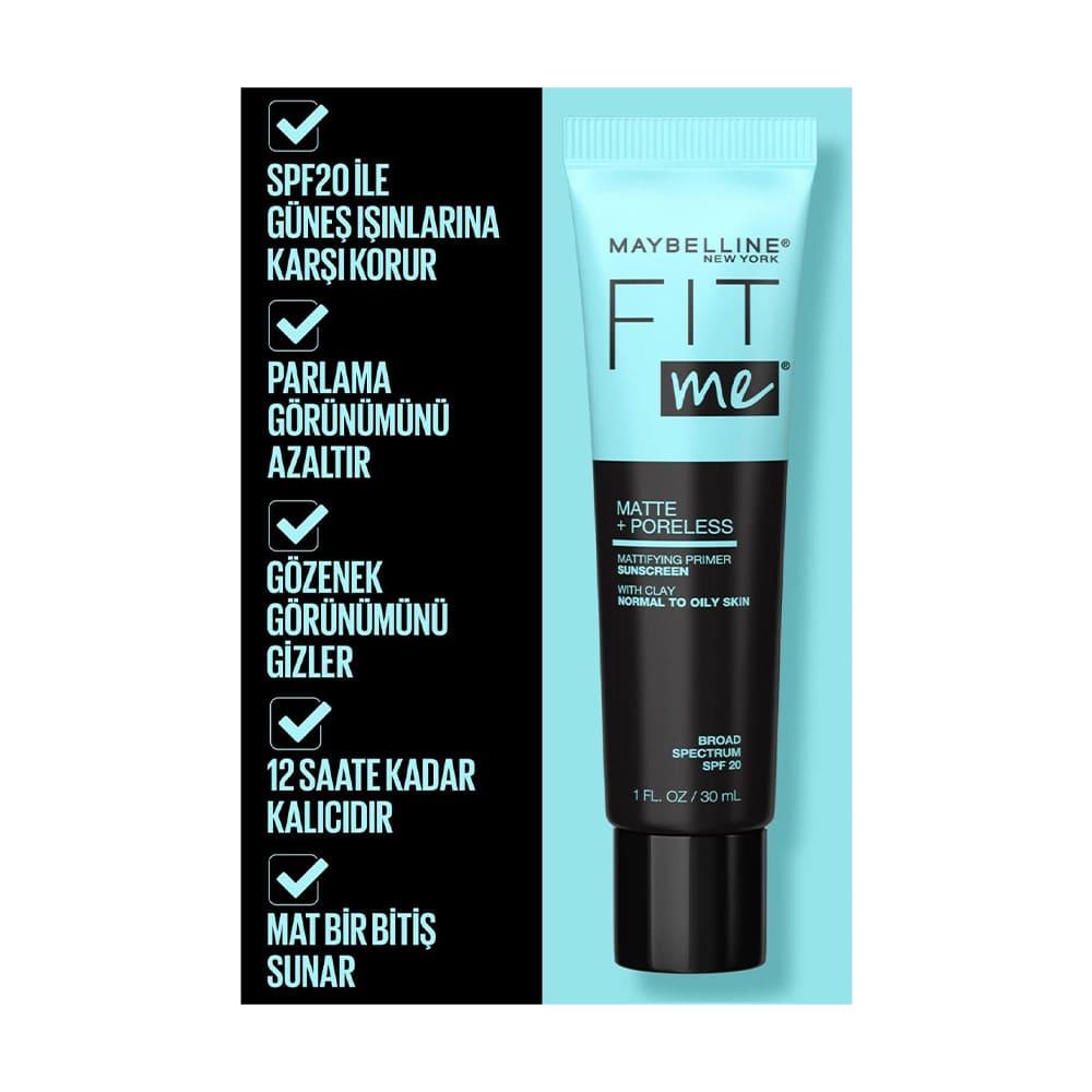 يعمل برايمر ميبيلين نيو يورك فيت مي مات + بورلس على تشويش المسام وتقليل العيوب والتحكم في اللمعان للحصول على مكياج طبيعي غير لامع لمدة 16 ساعة.
