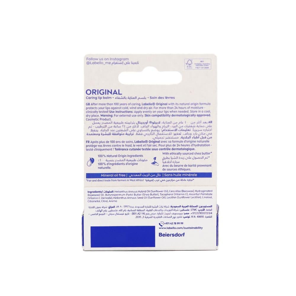 لابيلو بلسم مرطب للشفاه الأصلي بملمس ناعم ويمنح الشفاه ترطيبًا يدوم طويلًا وعناية مكثفة ويحفظ الشفتين من الجفاف غني بزبدة الشيا المرطبة والبانثينول للعناية بالشفاه، ويتميز بأنه سريع الامتصاص ويوفر عناية للشفاه تدوم 12 ساعة، مما يتركها ناعمة بشكل مثير ومحمية بشكل فعال ملمس ناعم يذوب على شفتيك فوراً ويبقيهم مرطبتين لمدة 24 ساعة.