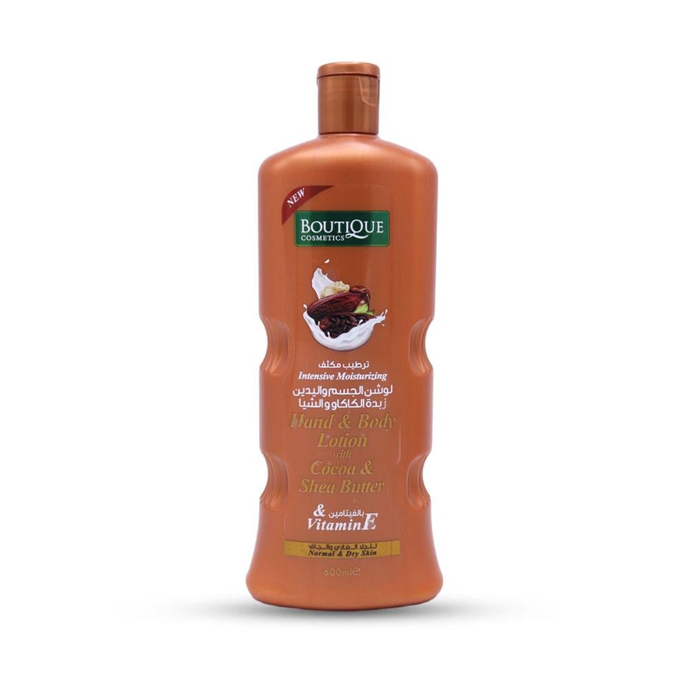 بوتيك لوشن تفتيح وترطيب للجسم واليدين بزبدة الكاكاو والشيا يحتوي بتركيبته المتطورة على نسبة عالية من المواد المرطبة لبشرة صحية ومشرقة. إن تركيبته الخفيفة تمتصها البشرة بسرعة لتبقيها ناعمة ورطبة ونضرة طوال اليوم. الاستخدام المتكرر يعطي بشرة مشرقة ورطبة.فوائد ومميزات لوشن الجسم واليدين بزبدة الكاكاو والشيا من متجر اسراركو:زبدة الشيا مع الكاكاو تساعد على إعادة ترطيب البشرة وزيادة نضارتها.يُحافظ لوشن زبدة الشيا مع الكاكاو على مرونة البشرة ويدعم نسيجها.تساعد زبدة الشيا على الحد من علامات الشيخوخة التي تظهر على البشرة والتجاعيد. تساعد زبدة الشيا على إنتاج الكولاجين بالجلد وتمد البشرة بفيتامين أ، والذي يساعد على تغذية البشرة، مما يقلل من ظهور العلامات الدقيقة.تعتبر زبدة الشيا من العناصر التي لها دور كبير في ترطيب البشرة. يساعد لوشن زبدة الشيا مع الكاكاو على ترطيب البشرة الجافة بعناية.استخدام لوشن زبدة الشيا يساعد على توحيد لون البشرة، والتخلص من البقع الداكنة التي توجد عليها بالإضافة إلى التخلص من الكلف والنمش.طريقة استعمال لوشن الجسم واليدين بزبدة الكاكاو والشيا من متجر اسراركو:يتم وضع كمية مناسبة من بوتيك لوشن على الجسم وتدليك المناطق مثل الاكواع والركبتين والأكتاف والأقدام. يناسب جميع انواع البشرة .المكونات:ماء نقي ، بارافين ليكويدوم . ميريستات الايزوبروبيل : كحول سيتوستيريلي، كحول سيتيلي، سيناريت ۲۰ ، ستيرات الفليسرول ، حمص الشمع . نیاسینامید . عطر، فينوكسي إيثانول، زبدة الكاكاو، زبدة الشيا، اسينات، التوكوفيرول ، ميتيل بارابين ، كاربومبر ، بروبيل بارابين ، سي، اي 17200، سي اي 19640.التحذيرات:للاستخدام الخارجي فقط.يحفظ في مكان بارد وجاف ، بعيداً عن متناول الأطفال.توقفي عن استخدام المنتج في حالة حدوث تهيج أو حساسية.احذري من ملامسة المنتج للعينين. في حال ملامسة العين يشطف بالماء على الفور.