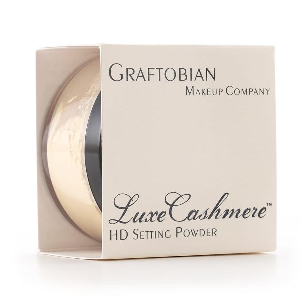 بودرة تثبيت غرافتوبيان لوكس كاشمير اتش دي تحتوي على تركيبة جديدة من قاعدة مكونات فائقة الدقة. مثل جميع منتجات Graftobian ، فهي مصنوعة في الولايات المتحدة الأمريكية من مكونات عالية الجودة. متوفرة بخمسة ألوان ، هذه المساحيق ناعمة وملموسة. إنها تعمل على تلطيف البشرة بسرعة مع إحساس خفيف وناعم. تكمل مساحيق التثبيت LuxeCashmere الخالية من الوزن تقريباً وتثبت بشكل جميل كريم الأساس UHD Glamour Creme الخفيف للغاية.