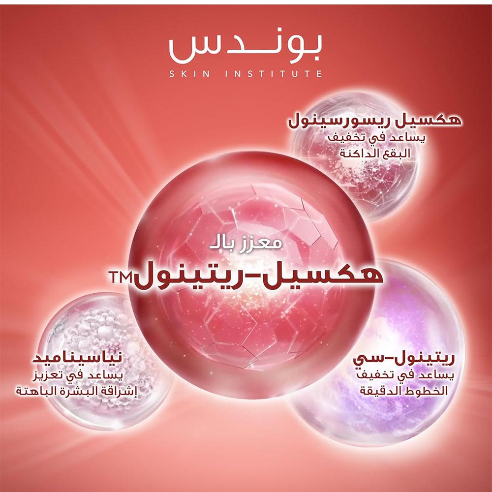 - كريم بوندز ايج ميراكل الليلي مدعوم بنسبة 10٪ من مركب ريتينول سي + فيتامين ب 3 لمحاربة ومنع علامات الشيخوخة المبكرة.