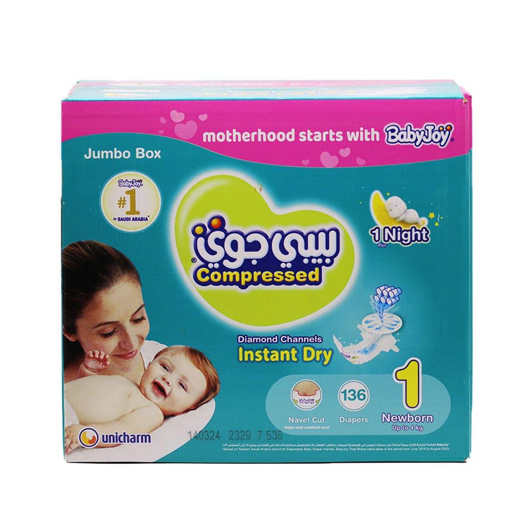 الوصف : بيبي جوي حفاضات مضغوطة مقاس 1 حديثة الولادة