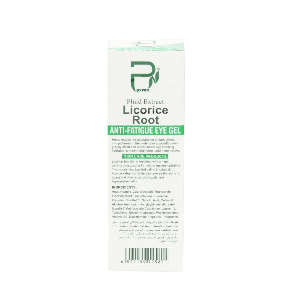 الوصف:بايرون جل العناية بمنطقة حول العين بخلاصة عرق السوس (ANTI-FATIGUE EYE GEL) يساعد في تقليل ظهور الهالات السوداء والانتفاخات في منطقة أسفل العين مع لمسة نهائية غير دهنية تترك تحت العينين تبدو رطبة وناعمة ومشرقة وأكثر يقظة. جل عرق السوس للعين غني بتركيبة ترطيب عالية الكثافة لاستعادة الترطيب يعمل جل العين المغذي هذا على تهدئة البشرة المتهيجة ومستخلصات عرق السوس التي تساعد على عكس علامات الشيخوخة ويقلل من البقع الداكنة وفرط التصبغ جل موازنة تحت العين غني بعرق السوس والببتيدات التي تساعد على التغلب على مشاكل مثل الخطوط الدقيقة والتجاعيد واثار السهر والتعبالفوائد والمميزات:يجدّد خلايا البشرة، ويساعد على تعويض الخلايا التالفة بسرعة، حيث إنّ الأحماض الموجودة فيه تبقي البشرة نضرةً وشابة، وتخلّصها من الجلد الميت. يقلل من البثور والحبوب الدهنيّة أو أي التهابات أخرى كالأكزيما وغيرها، وذلك لاحتوائه على عناصر مضادّة للالتهابات. يعتبر منظّف طبيعي للبشرة، حيث يمكن تنظيف الوجه به يوميّاً، ولديه قدرة على تخليص البشرة من مختلف أنواع الجراثيم والأتربة والميكروبات الضارّة.يساعد على التقليل من البقع الداكنة في البشرة والتصبّغات الجلدية. يساعد على تفتيح لون البشرة وتبييضها طبيعيّاً، وذلك لاحتوائه على مواد مقشّرة للبشرة ومجدّدة للخلايا.عرق السوس مثالي للوقاية من تأثيرات أشعة الشمس السلبية التي قد تؤدّي إلى مشاكل عدّة في البشرة منها ظهور علامات الشيخوخة والبقع الداكنة وغيرها. طريقة الاستعمال:قم بتدفئة جل العين عن طريق فركه على الأصابع قبل وضع كمية صغيرة منه في المنطقة تحت العين والحاجب. يمكن استخدامه صباحاً ومساءً.التحذيرات:للاستخدام الخارجي فقط.يحفظ بعيداً عن متناول الأطفال.احذر من ملامسة المنتج للعينين. في حال ملامسة العين يشطف بالماء على الفور.