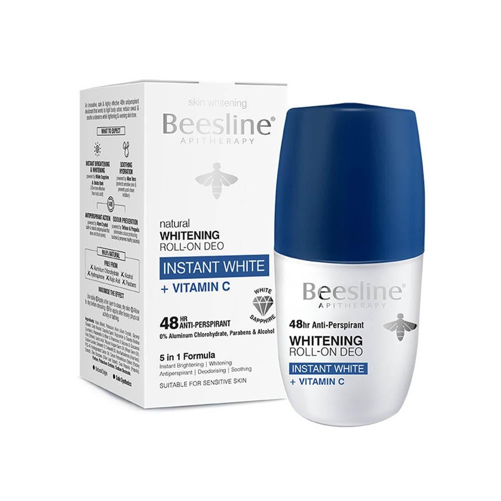 بيزلين مزيل عرق رول أون إنستانت وايت هو منتج مبتكر يعمل على حماية البشرة من التعرق والرائحة الكريهة لمدة تدوم حتى 48 ساعة مع تفتيح البشرة بشكل فوري ومستدام كما يحتوي على تركيبة طبيعية غنية بخلاصة العسل وفيتامين E، بالإضافة إلى مستخلصات نباتية فعّالة تعزز إشراقة البشرة وتعمل على تهدئتها.