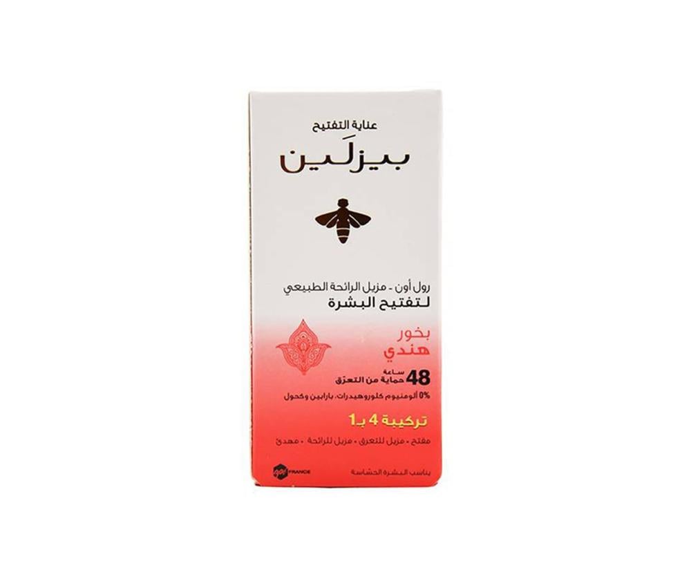 بيزلين رول اون مزيل الرائحة لتفتيح البشرة – بخور هندي هو مزيل عرق رول اون بتركيبة آمنة ومبتكرة يضمن حماية 48 ساعة من التعرق.