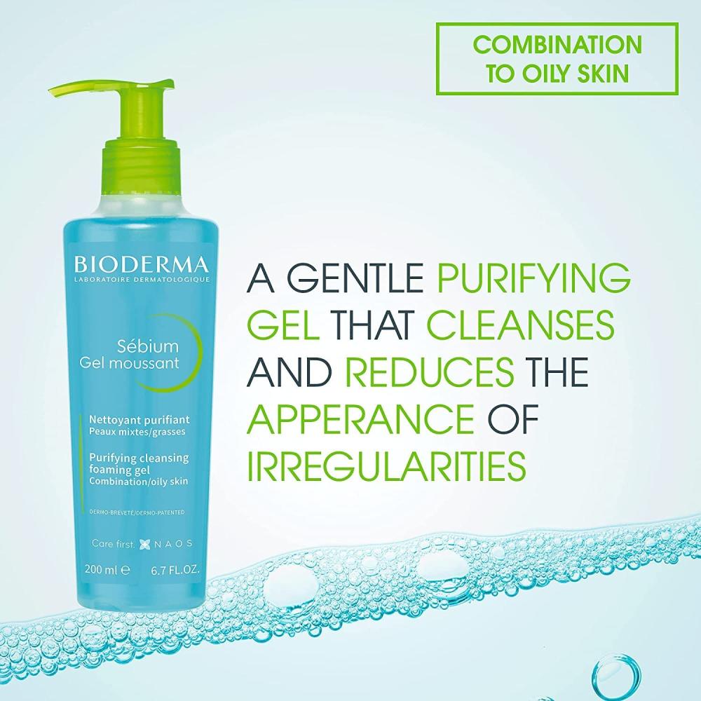 بيوديرما  جل الرغوة اليومي لتنظيف و تنقية البشرة الدهنية و المختلطة.Sebium Gel Moussant ينظف بلطف، مصنوع من مكونات لا تسبب الإزعاج. Sebium Gel Moussant يقلل الإفرازات الدهنية و يطهر البشرة بفضل مركب Fluidactiv® الحصري الذي يوازن ويحدد كمية الإفرازات الدهنية. خالي من الصابون، و يضمن الحماية الفائقة للبشرة والأعين. Sebium Gel Moussant لايسبب ظهور البثور.