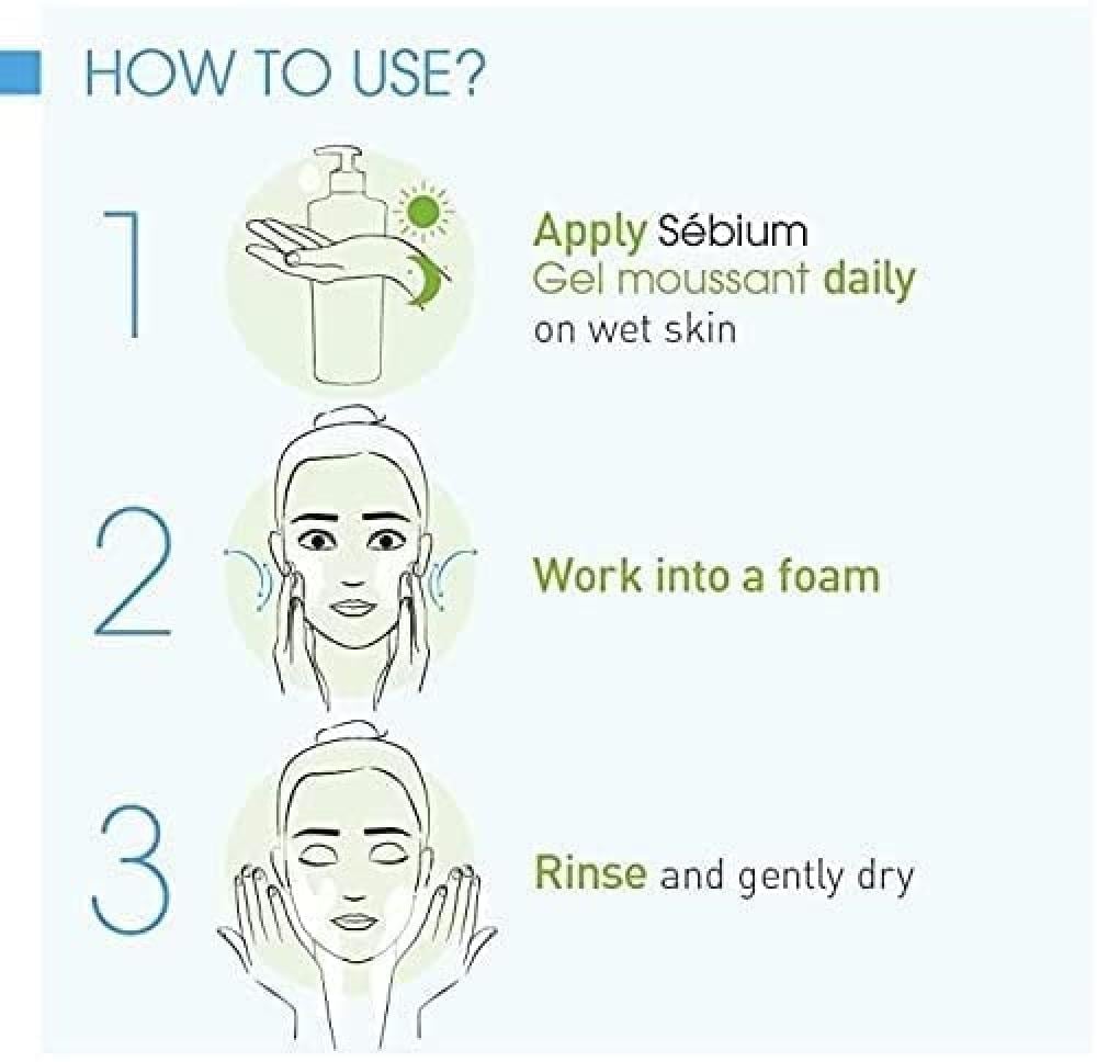 • أساس للتنظيف خال من الصابون  المنتج + يمكن إستخدام جل رغوة الحمام Sébium كرغوة الحلاقة.