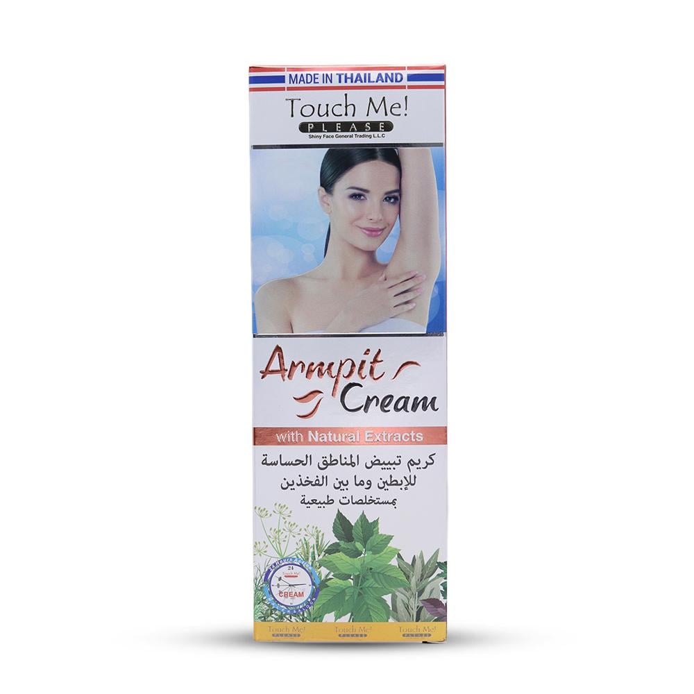 تقدم لكم تاتش مي بليز العلامة التجارية الرائدة في عالم التجميل تركيبة جديدة وفعالة لحل مشاكل المناطق الخشنة والبقع الداكنة للجلد كونها تحتوي على مستخلصات طبيعية أثبتت فعاليتها فهي تساعد على إعطائك بشرة بيضاء ناصعة, ناعمة وعلى ازالة الروائح الغير مرغوب فيها أيضاً. هذا الكريم آمن 100% على الجلد كونه لا يحتوي على مواد قاصرة او مضرة للجلد.