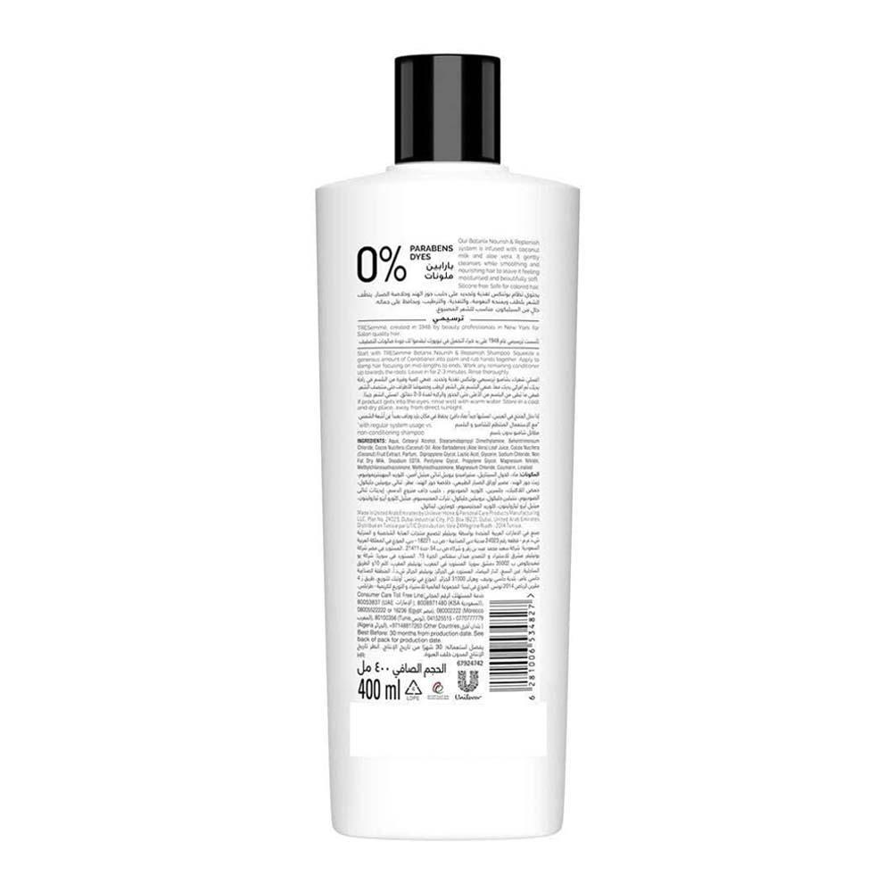 الوصف:تريسمي بلسم تغذية وتجديد بحليب جوز الهند والصبار مميز مصمم لتغذية وتجديد الشعر بفضل تركيبته الغنية والطبيعية. يجمع هذا البلسم بين فوائد حليب جوز الهند المعروف بخصائصه المرطبة والصبار المعروف بخصائصه المهدئة والمعززة لنمو الشعر. مثالي للشعر الجاف والمتضرر، حيث يساعد على استعادة نعومته ولمعانه الطبيعي.الفوائد والمميزات:يوفر ترطيبًا مكثفًا للشعر الجاف والمتقصف بفضل حليب جوز الهند.يغذي الشعر من الجذور حتى الأطراف بمكونات طبيعية غنية.يساعد في تجديد الشعر المتضرر ويعيد له حيويته.يحتوي على الصبار الذي يعزز نمو الشعر ويحسن من صحته.يجعل الشعر ناعمًا ولامعًا وسهل التصفيف.لا يحتوي على البارابين والسيليكونات، مما يجعله آمنًا للاستخدام اليومي.يمكن استخدامه على جميع أنواع الشعر، بما في ذلك الشعر المصبوغ والمعالج كيميائيًا. طريقة الأستعمال:اغسلي شعرك بالشامبو واشطفيه جيدًا بالماء.ضعي كمية مناسبة من البلسم على راحة يديك ووزعيه بالتساوي على شعرك من الجذور حتى الأطراف، اتركي البلسم على شعرك لمدة 2-3 دقائق.اشطفي شعرك جيدًا بالماء الدافئ حتى يتم إزالة البلسم تمامًا.استخدمي البلسم بانتظام بعد كل غسلة بالشامبو للحصول على أفضل النتائج.التحذيرات:للأستخدام الخارجي فقط.يحفظ في مكان بارد وجاف.يُحفظ بعيدًا عن متناول الأطفال.