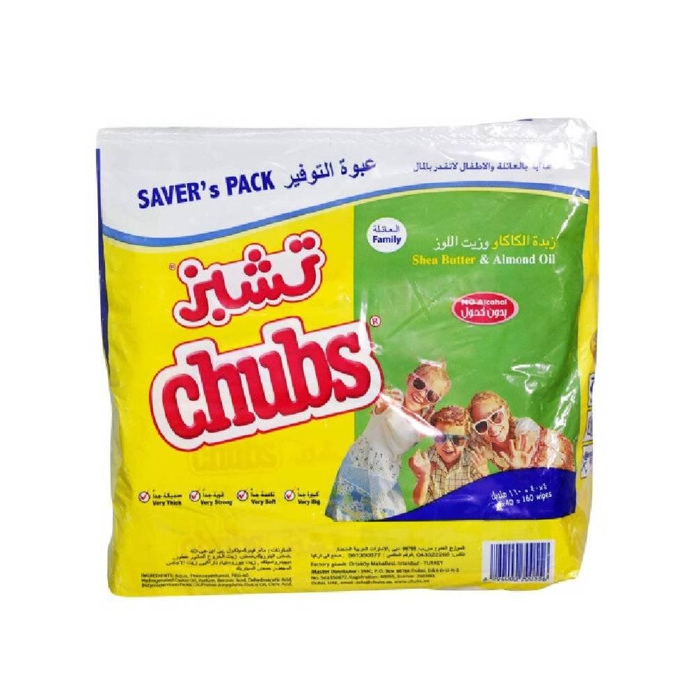 تشبز مناديل مبللة بزبدة الكاكاو وزيت اللوز عبوة التوفير 4*40 منديل