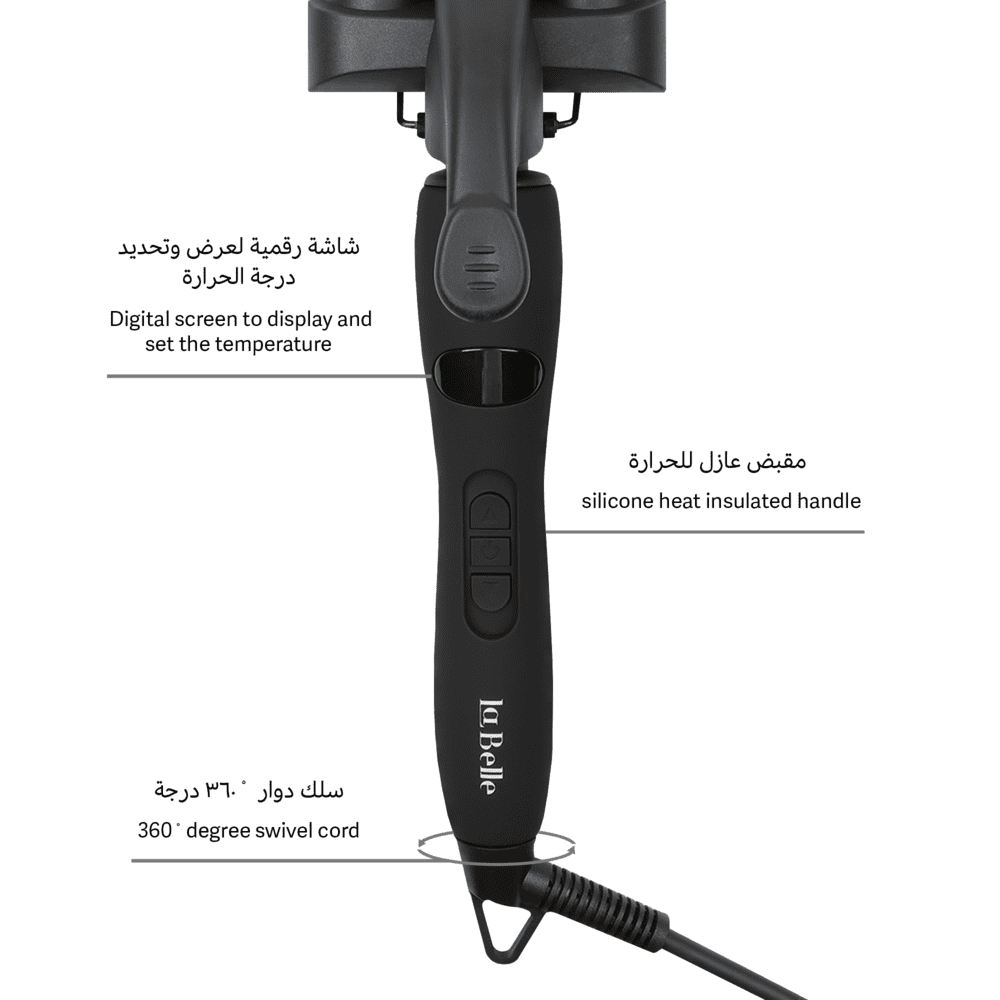 لابيل ويفي مموج الشعر الثلاثي يوزع الحرارة بالتساوي لتحصلي على تموجات شعر متناسقة تمامًا خلال ثواني، يأتي لابيل ويفي بدرجات حرارة مختلفة تصل إلى 220 درجة مئوية.