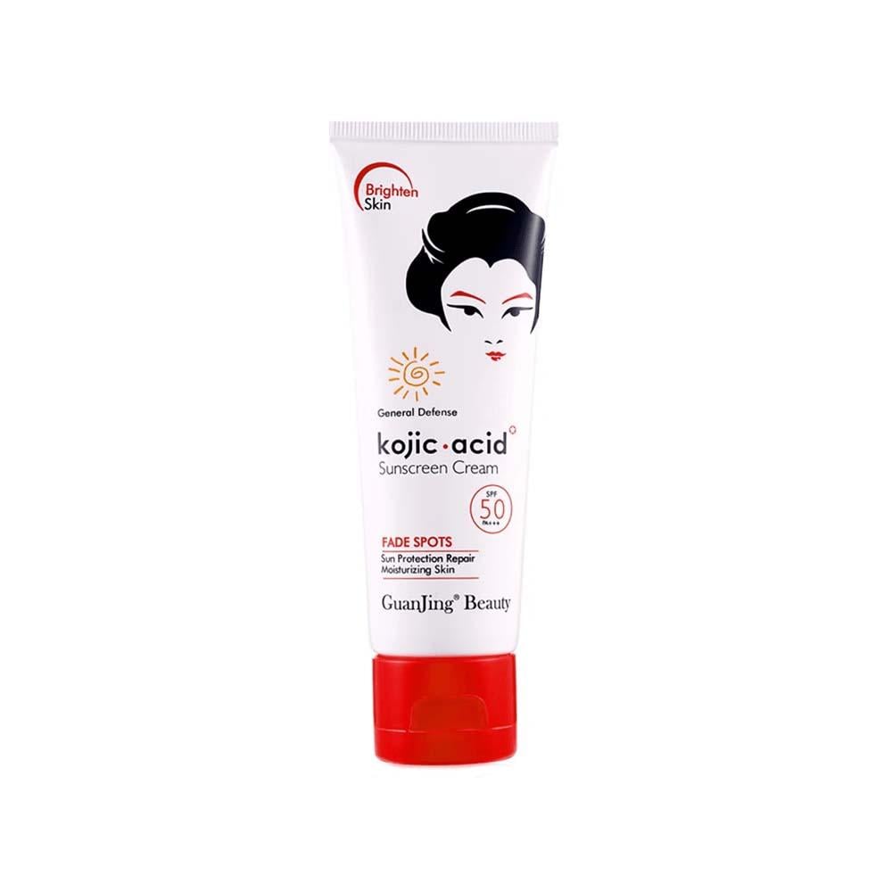 كريم واقي الشمس بعامل حماية 50 من جوانجنج بيوتي يوفر حماية فعّالة ضد أشعة الشمس الضارة ويساعد في منع الحروق وتلف الجلد الناتج عن التعرض المطول للشمس. يحتوي على حمض الكوجيك الذي يعمل على تفتيح وتوحيد لون البشرة، كما يساعد في منع ظهور البقع الداكنة وتقليل مظهرها.