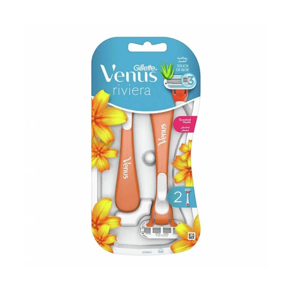 جيليت  فينوس شفرات حلاقة للاستعمال مرة واحدة ريفيرا 2 قطعة بخلاصة الصبار يعتبر من أكثر الأنواع المشهورة التي تستخدمها السيدات فهي شفرات سهلة الاستخدام وسريعة وتمتاز شفرات فينوس بتقنية ثلاثية تساعد على حلاقة الشعر  حلاقة دقيقة للوصول الى المناطق التي يصعب الوصول اليها تحتوي شفرات جيليت فينوس على طرف مرطب يحتوي على فيتامين إي تساعدك شفرات فينوس على حلاقة ناعمة وممتازة في تمريرة واحدة.