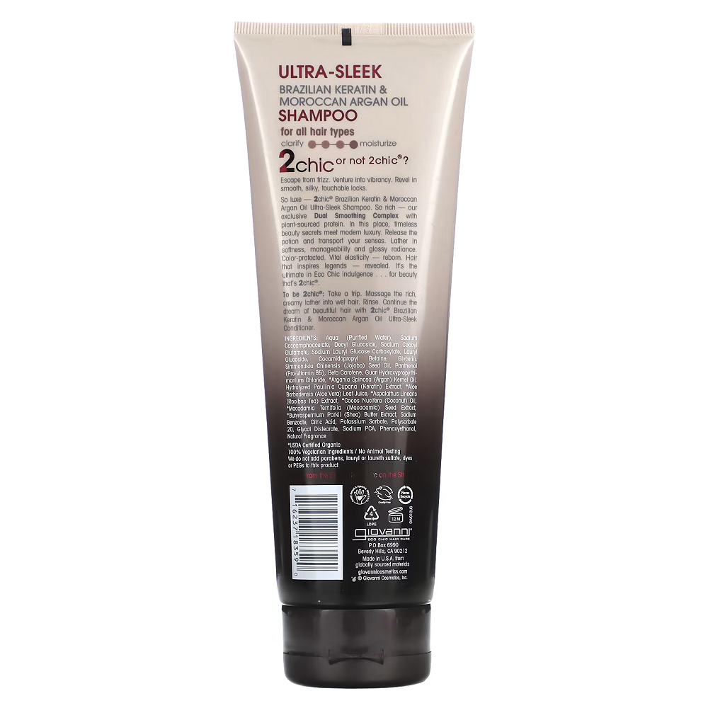 يمكن للتغذية الطبيعية من الكيراتين وزيت الأرغان وجوز الهند وزبدة الشيا عكس حالة التدهور واستعادة جمال شعرك الطبيعي. استخدميه مع بلسم 2chic Ultra-Sleek.