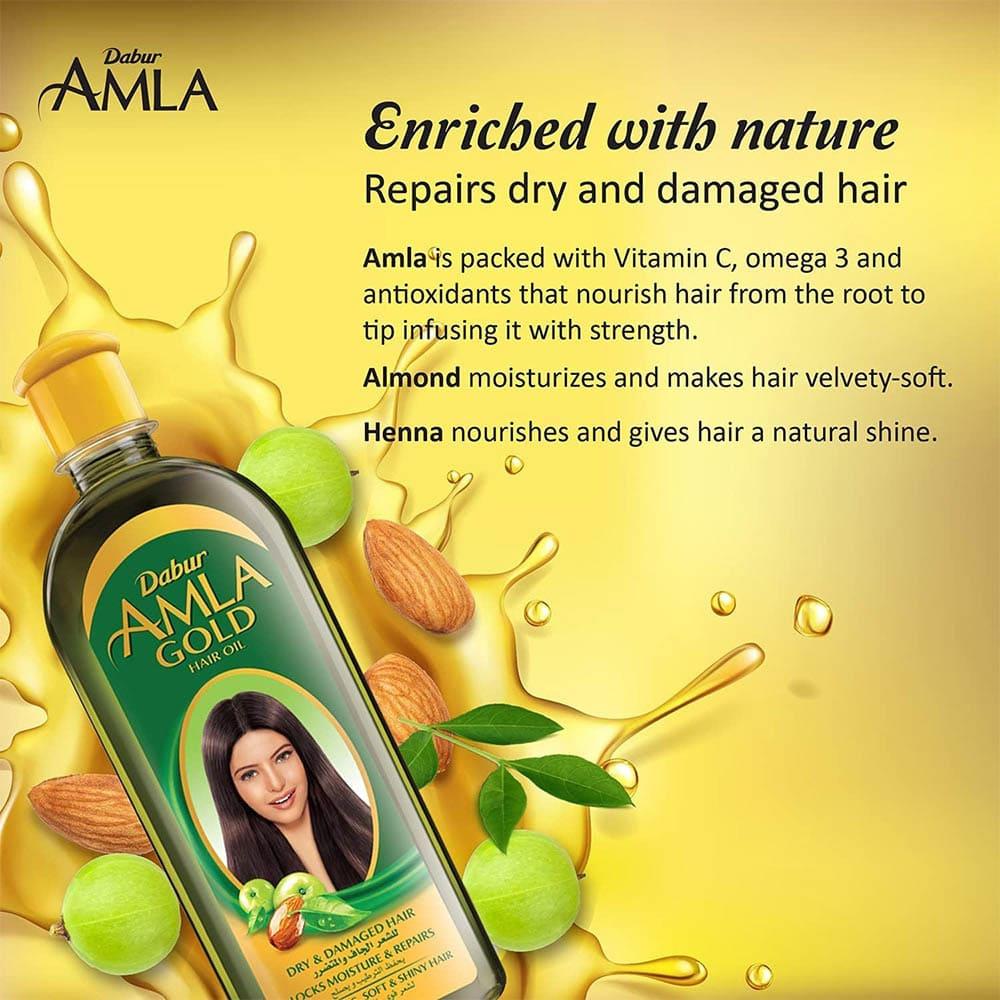 دابر املا زيت الذهبي للشعر الجاف والمتضرر زيت شعر مغذي ومخصص لترطيب وإصلاح الشعر الجاف والمتضرر. يحتوي هذا الزيت على مزيج من زيوت طبيعية غنية بالفيتامينات والعناصر المغذية التي تعمل على تعزيز صحة الشعر وإعادة بناء الأجزاء المتضررة منه. التركيبة تحتوي على خلاصة الأملا، المعروفة بفوائدها العديدة لتغذية الشعر وتقويته، بالإضافة إلى زيوت أخرى تعمل على ترطيب الشعر بعمق وإعادة حيويته.