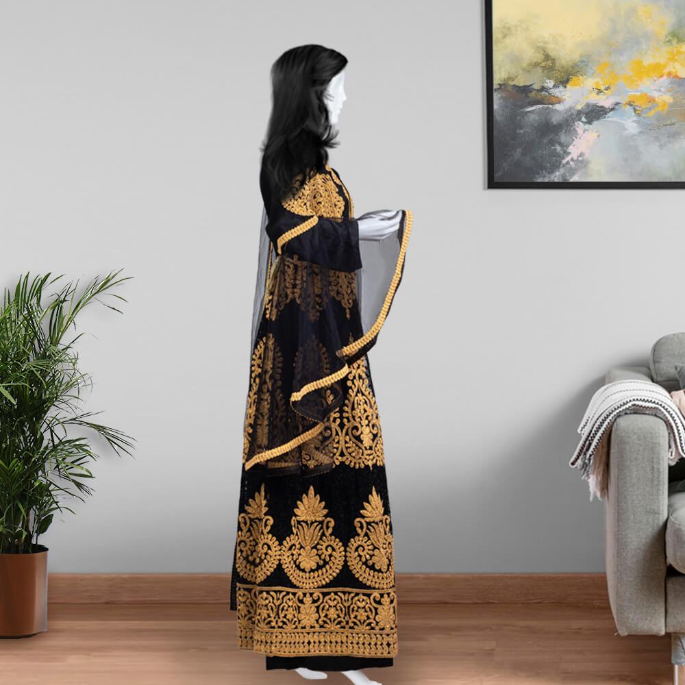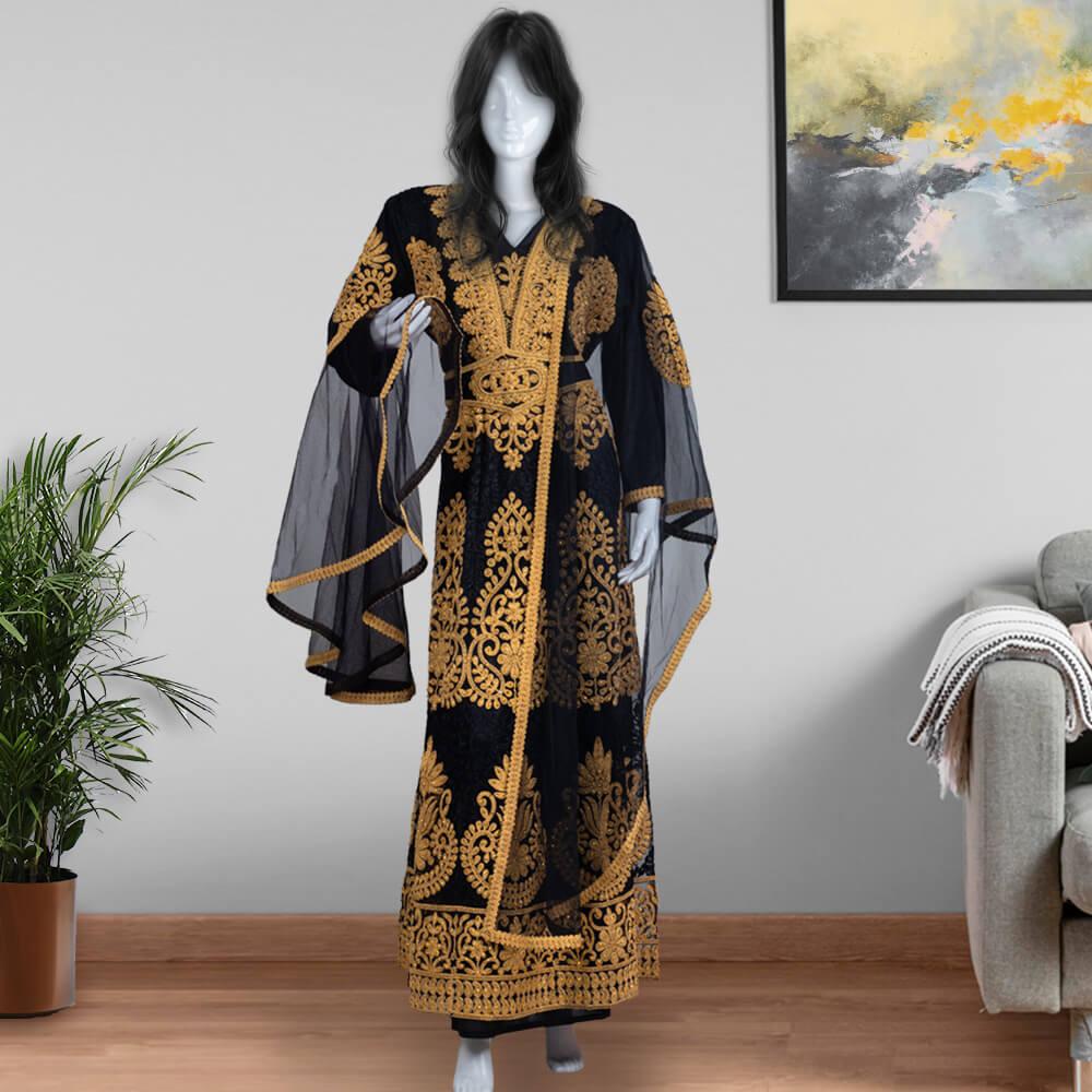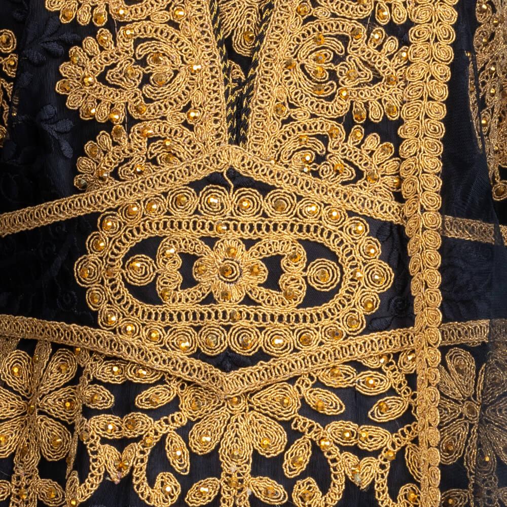 دراعة مطرزة مع كريستال باللونين الأسود والذهبي، هي قطعة متميزة من الملابس التقليدية الفاخرة. تتميز هذه الدراعة بتطريز دقيق وكريستالات براقة تضيف لمسة من الفخامة والرقي، مما يجعلها مناسبة للمناسبات الخاصة والحفلات. تصميمها الأنيق يجمع بين التراث الثقافي والتحديث العصري، مما يجعلها خيارًا رائعًا للمرأة التي تبحث عن الأناقة والتميز.
