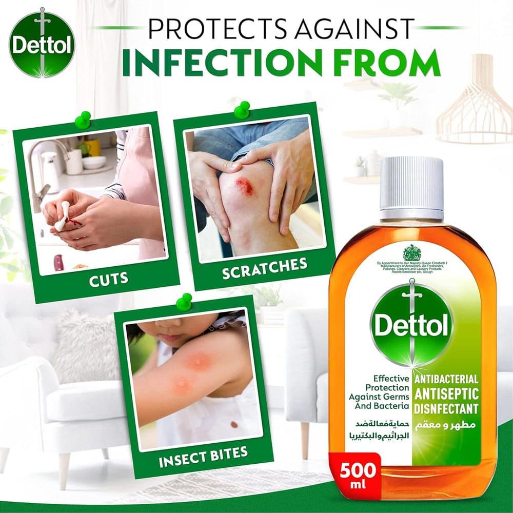 قم بتنظيف الأسطح والأدوات والملابس باستخدام ديتول السائل مباشرة.