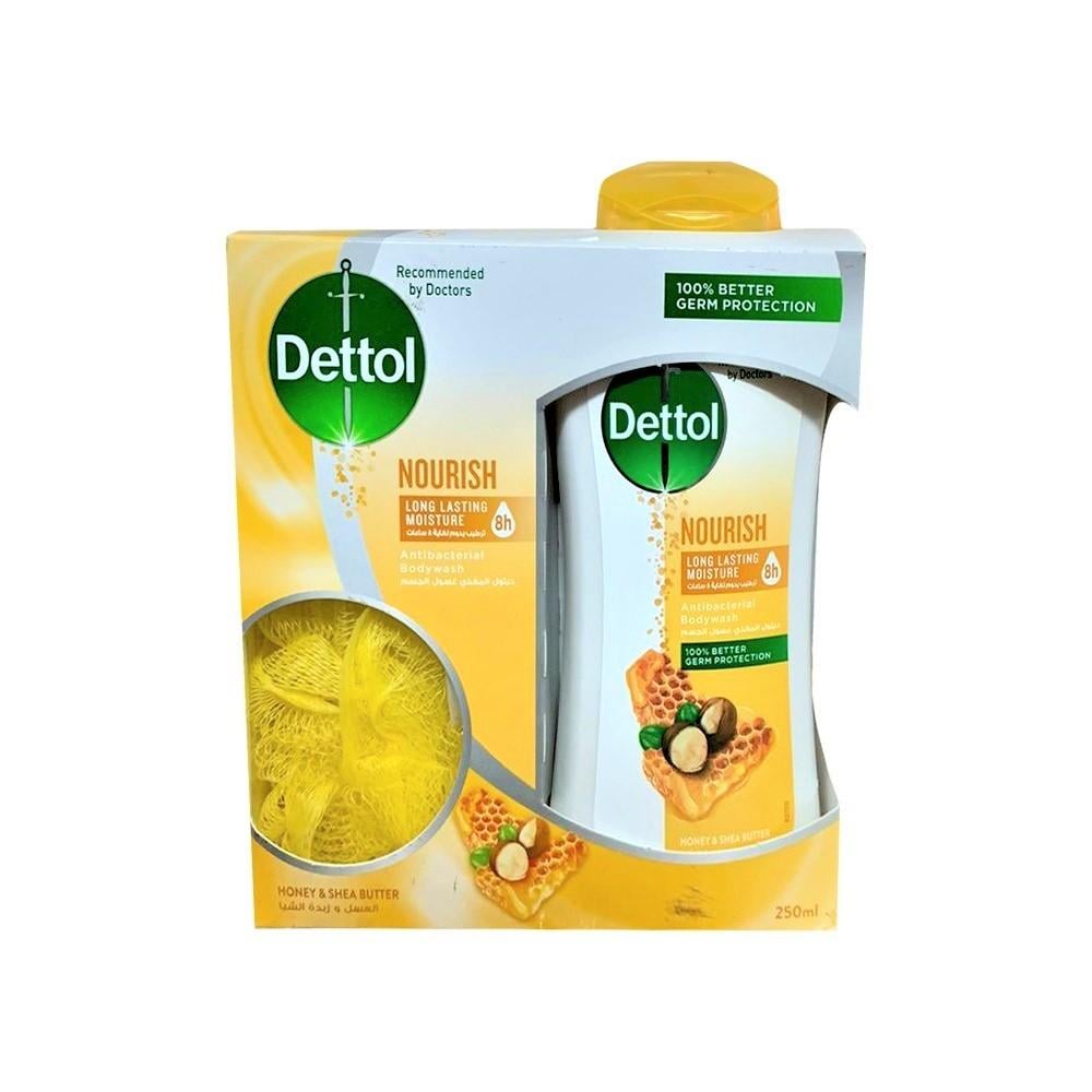 الفوائد والمميزات: ديتول غسول جسم عسل وزبدة الشيا مع ليفه