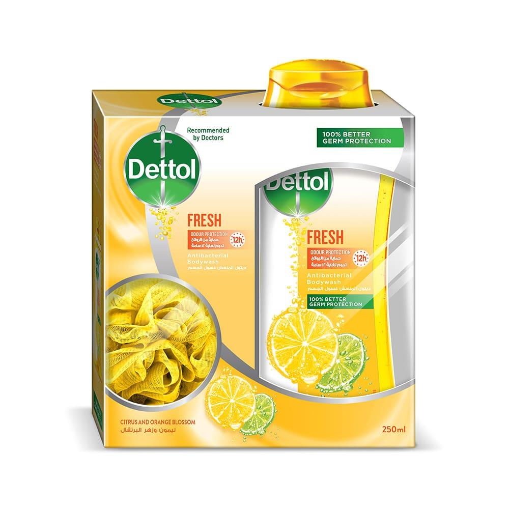 ديتول غسول جسم فريش بالليمون وزهر البرتقال – 250 مل + ليفة