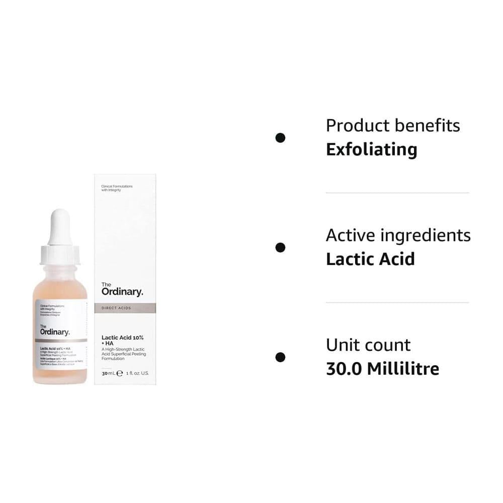 الوصف:يستهدف لون البشرة غير الموحد والخطوط الدقيقة ، يوفر حامض الاكتيك 10٪ + HA 2٪ (30 مل) تقشيرًا فائقًا.ويعمل هذا السيروم على تقشير بشرتك بلطف، والتخلص من طبقة الجلد القديمة والباهتة للكشف عن نضارة البشرة.يتضمين على حمض الهيالورونيك أيضًا في التركيبة لتقوية حاجز الدهون مما يزيد من قدرة الجلد على جذب الرطوبة والحفاظ عليها.مع الاستخدام المنتظم تحصلين على بشرة أقوى وأكثر صحه.مميزات ومواصفات سيروم لاكتيك اسيد 10% من ذا اورديناري 30 مليعمل هذا السيروم على تقشير بشرتك بلطف، والتخلص من طبقة الجلد القديمة والباهتة للكشف عن نضارة البشرة.يعمل على تصحيح لون البشرة المتباين.يمتاز بخفة وزنه على البشرة وسهولة امتصاصه.يتكون هذا المقشر من حمض اللاكتيك، وهو من أحماض الألفا هيدروكسي الذي يوفر بشرتك تقشيرًا فائقًا وتنشيط تجديد الخلايا للحد من التصبغ وتحسين نسيج الجلد بوجع عام،مع الحفاظ على رطوبة البشرة.يحتوي على خلاصة الفلفل التسماني التي تعمل على تقليل علامات الالتهاب،و تهدئة الحساسية الناتجة عن التقشير.يساهم في تقليل ندبات حب الشباب.معزز بحمض الهيالورونيك المعروف بفوائده في ترطيب البشرةيساهم في محاربة تشكل الخطوط الرفيعة طريقة الاستخدام:في حالة حدوث تهيج ، يمكنك تخفيفه لتقيل الفاعلية.لا يستخدم على البشرة الحساسة أو المقشرة .نحن ننصح باستخدام واقي من أشعة الشمس وتجنب أشعة الشمس قدر الإمكان عند استخدام هذا المنتج.