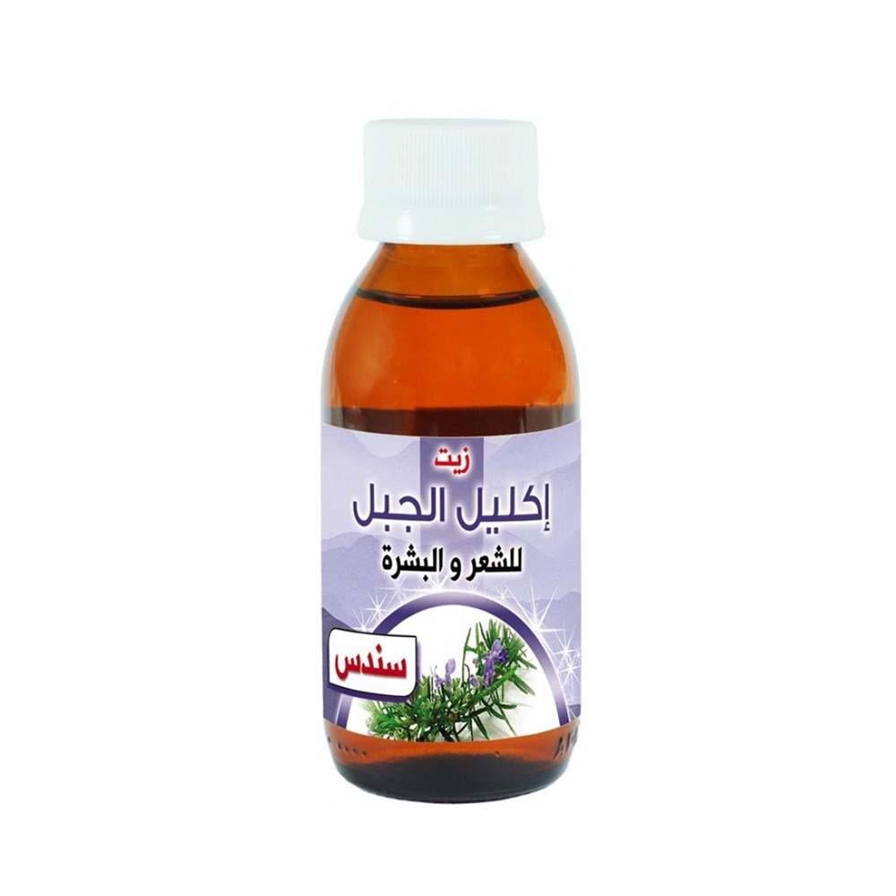 يحتوي زيت اكليل الجبل من سندس على الفيتامينات، المعادن، الكالسيوم، الحديد والمنغنيز، الأمر الذي يقوم بتعزيز إفراز الكولاجين، وزيادة ترطيب البشرة، والحدّ من ظهور علامات الشيخوخة المبكرة. كما أنه يساعد على شد الجلد المترهل وجعله يبدو أكثر مرونة ونضارة. كما انه ينشط الدورة الدمويّة في الرأس، ويمنع ظهور الشيب في سنٍ مبكرٍ، ويصلح الشعر التالف. ينظف زيت اكليل الجبل فروة الرأس، ويطهرها من البكتيريا، والدهون؛ لاحتوائه على حمض الكافييك، و حمض الروزمارينيك. يمنح الشعر الحيوية، واللمعان.